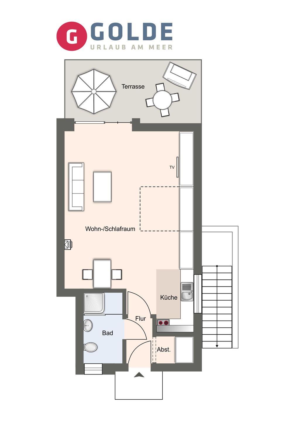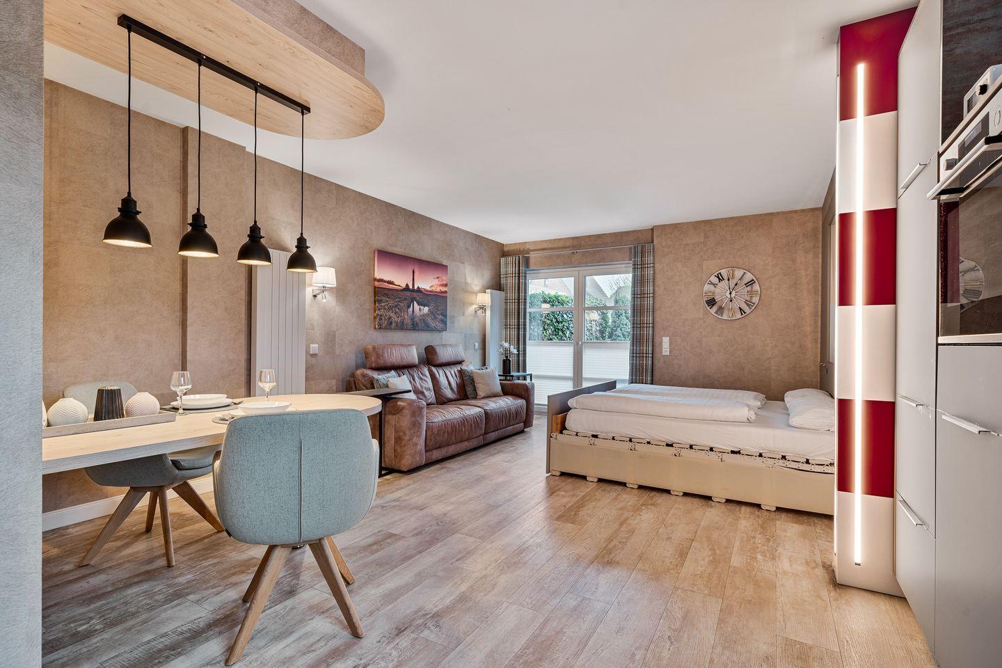 Das luxuriöse Appartement "Die Dorfkoje" verfügt über ca. 40m² Wohnfläche und bietet Platz für 1-2 Personen.