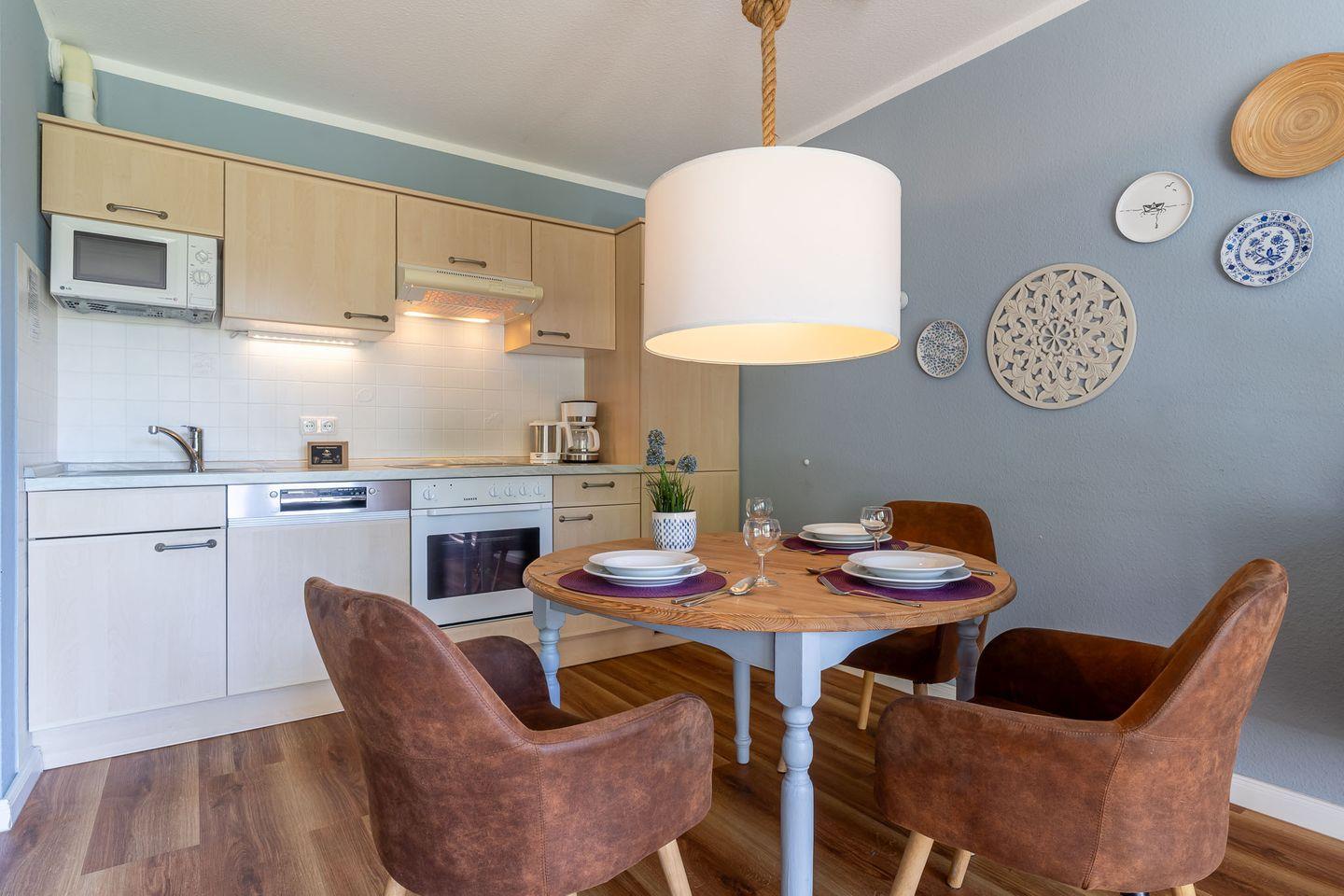 Stilvolle 2-Zimmer-Wohnung im EG mit ca. 52?m² für 2 Personen. Hundefreundlich, mit voll ausgestatteter Küche, WLAN, Radio/CD, Terrasse zur Südseite und Parkplatz. Ideal für entspannte Urlaubstage in Strandnähe.