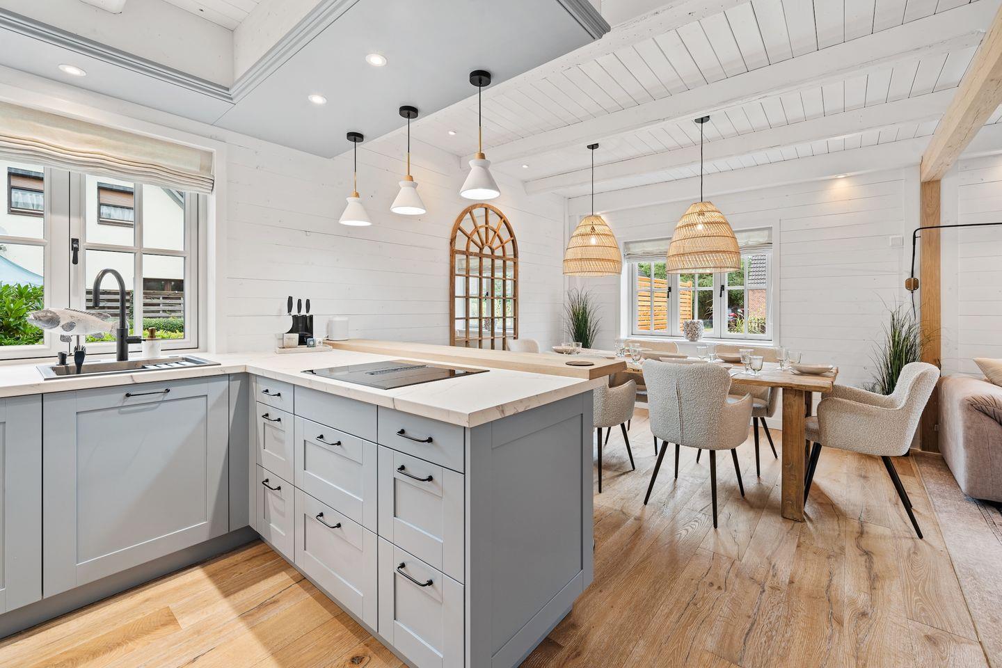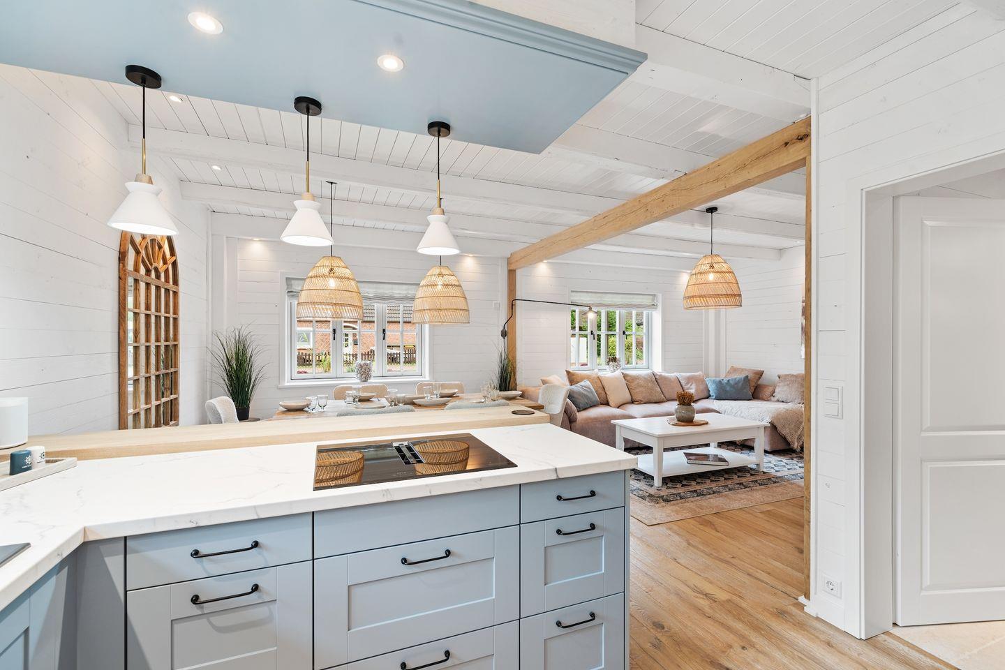 Im Erdgeschoss erwartet Sie ein offener, stilvoll eingerichteter Wohnbereich mit moderner, vollausgestatteter Küche und gemütlichem Essplatz – perfekt für gesellige Abende.