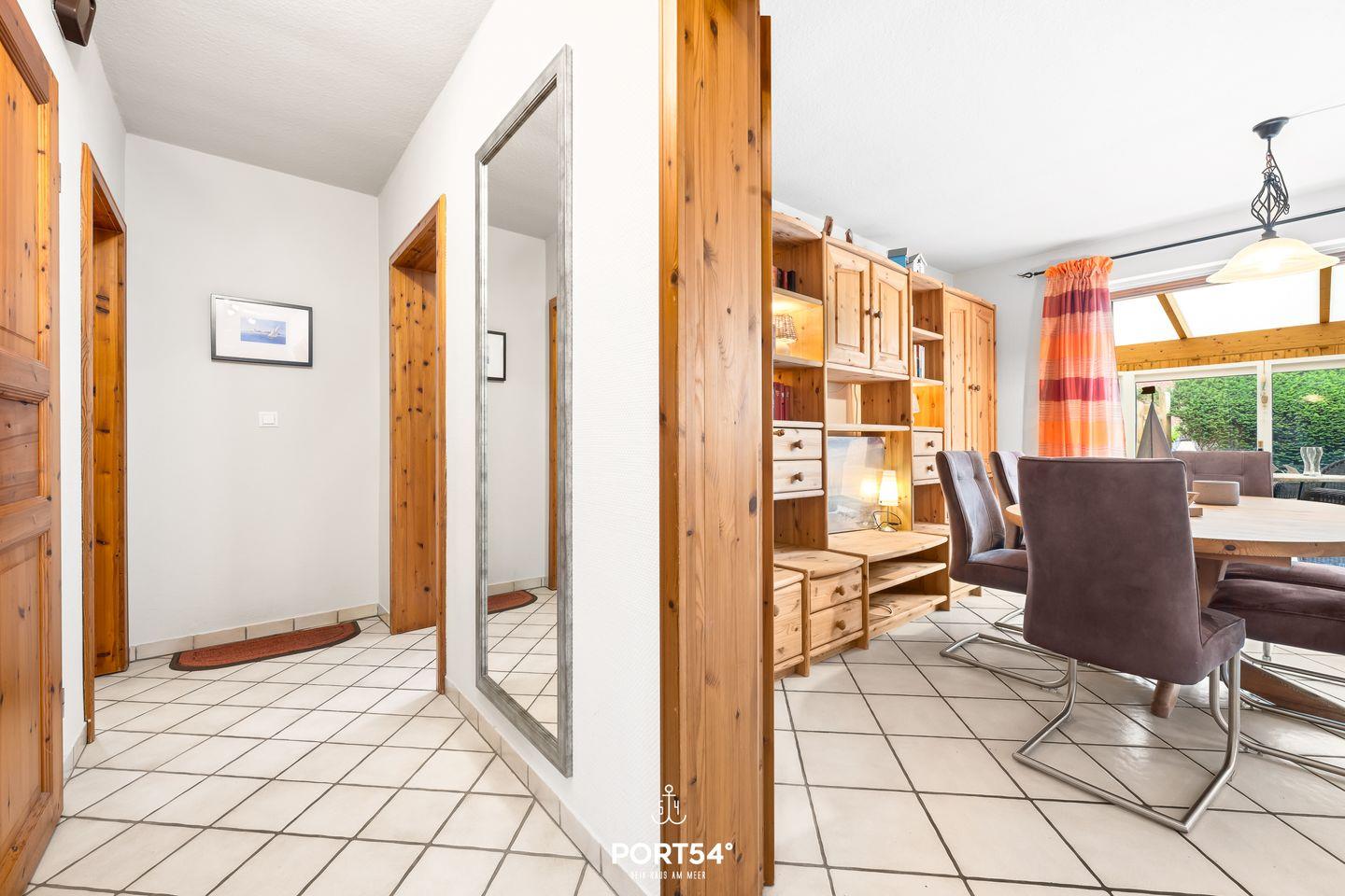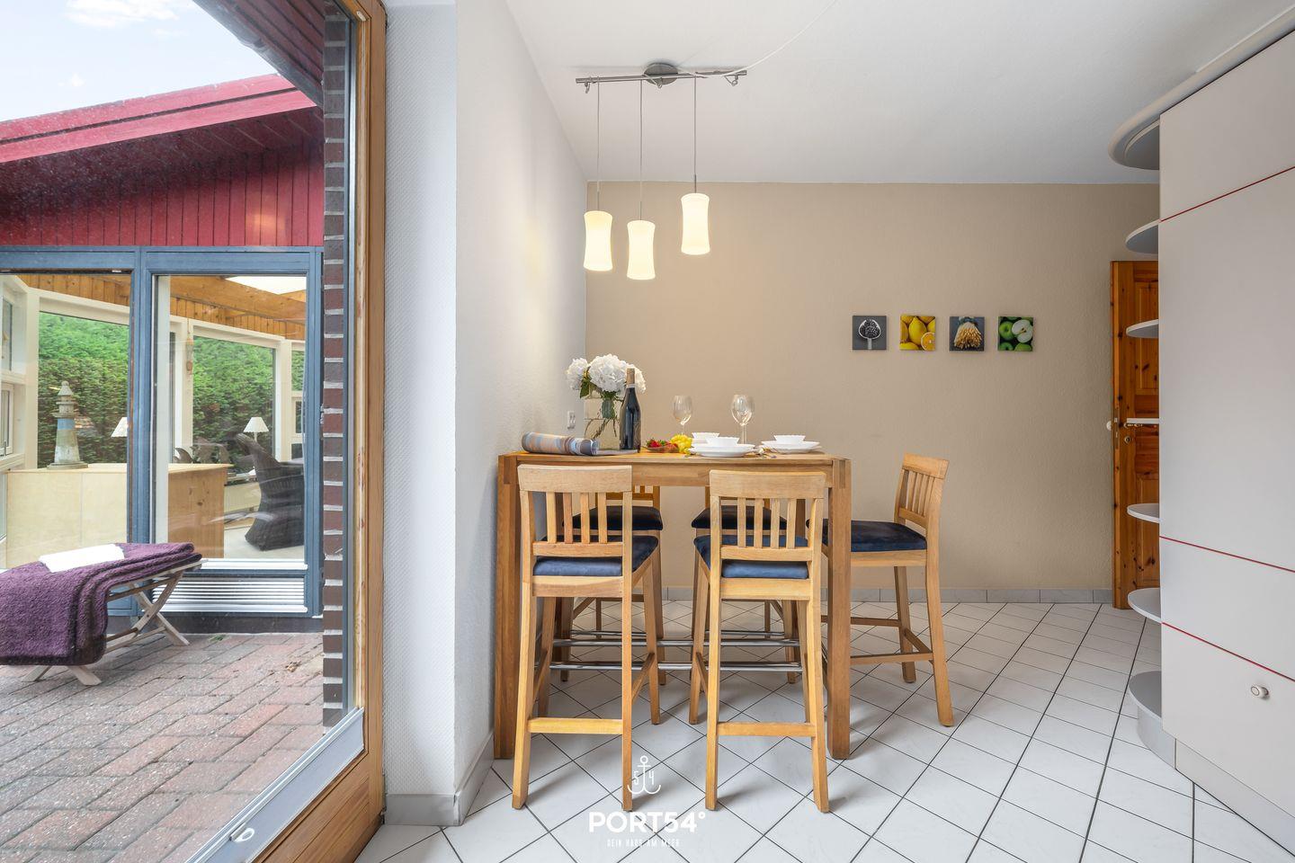 Die Unterkunft befindet sich im Erdgeschoss eines abgeschlossenen Grundstücks, das einen sicheren und kinderfreundlichen Rahmen bietet. Die Kombination aus einem eingezäunten Garten mit Windschutz und einem großen Wintergarten sorgt für eine gemütliche Atmosphäre im Freien – perfekt auch für entspannte Stunden mit Hund. Nach einem erlebnisreichen Tag können Sie auf der geschlossenen Terrasse relaxen und die frische Luft genießen.