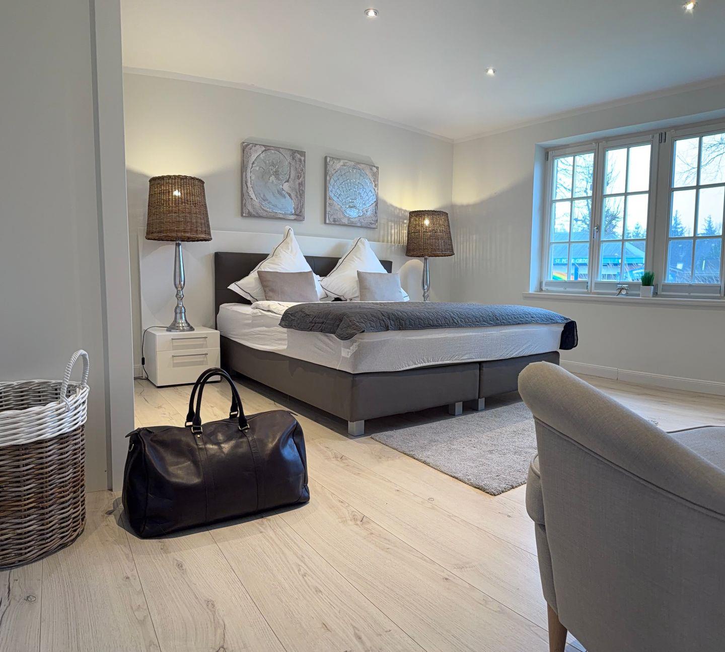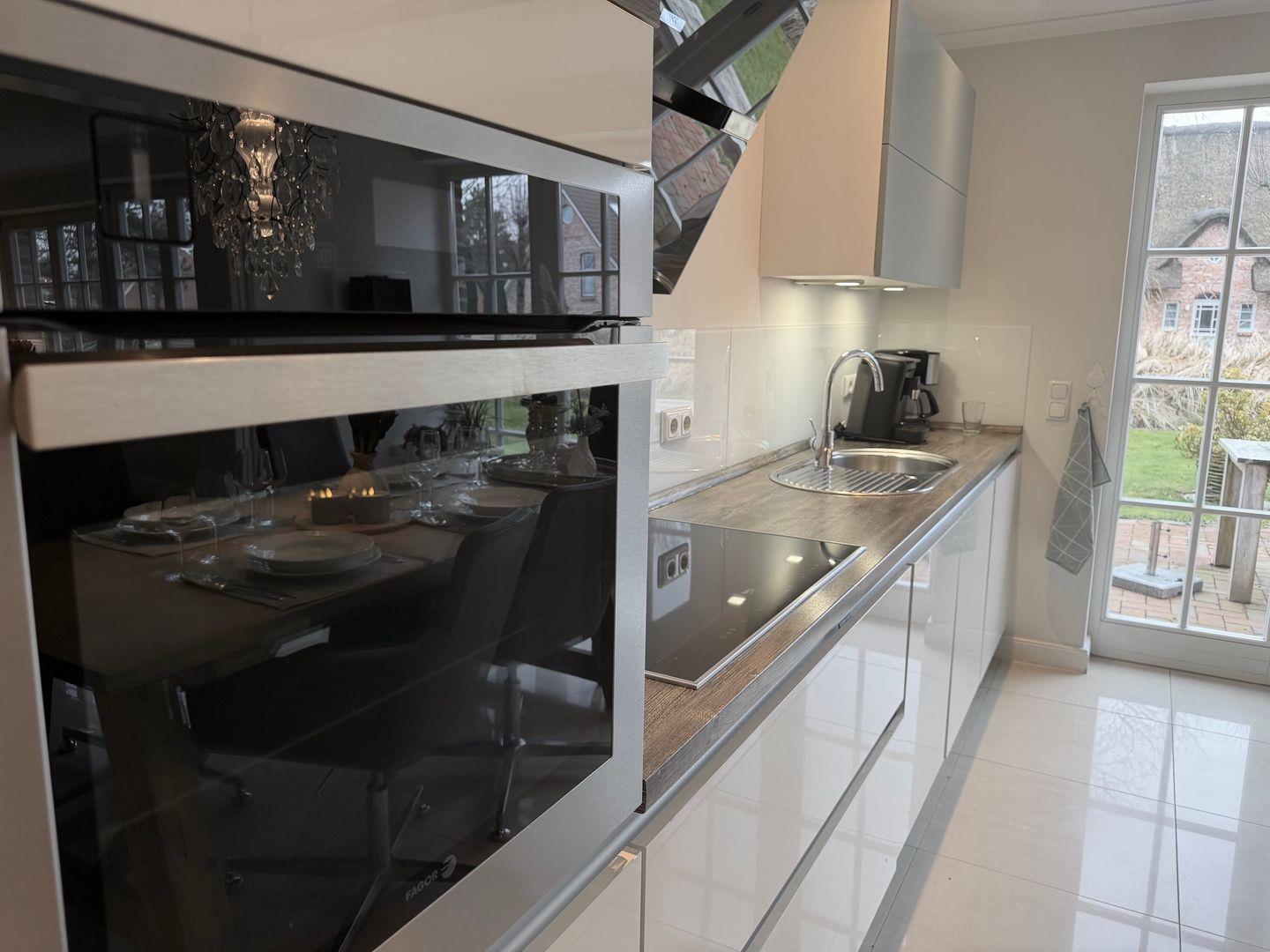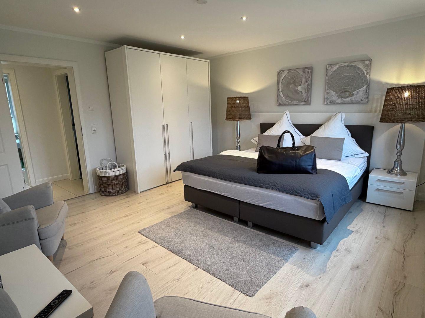 Luxuriöse Erdgeschoss-Ferienwohnung in Sankt Peter-Ording mit Kamin, privatem Garten und moderner Ausstattung für entspannte Urlaubstage an der Nordsee.
