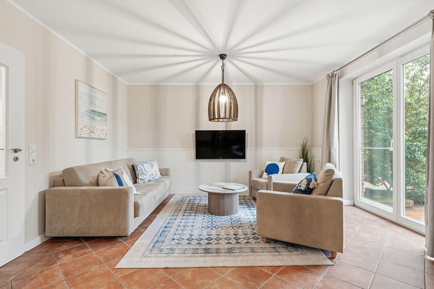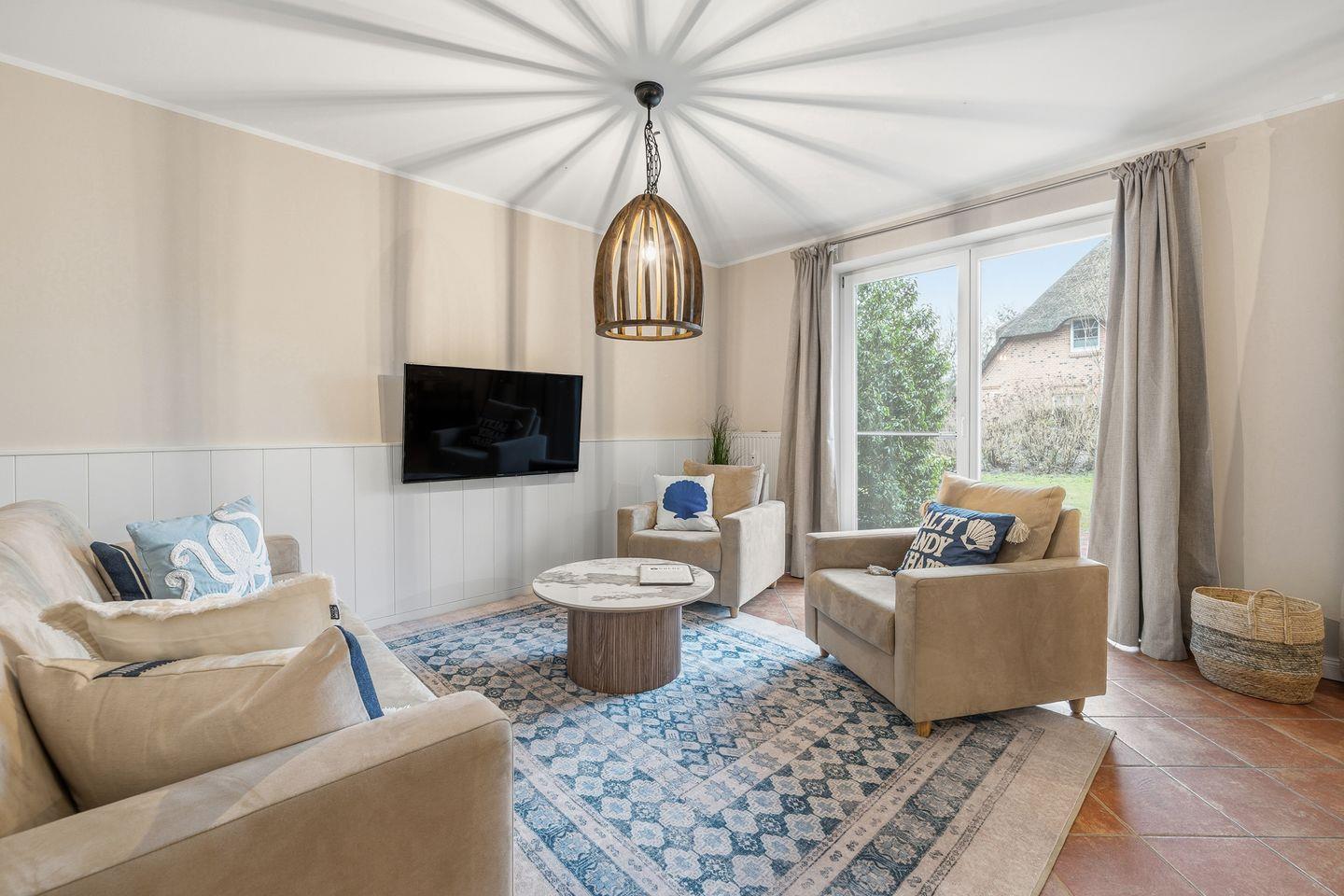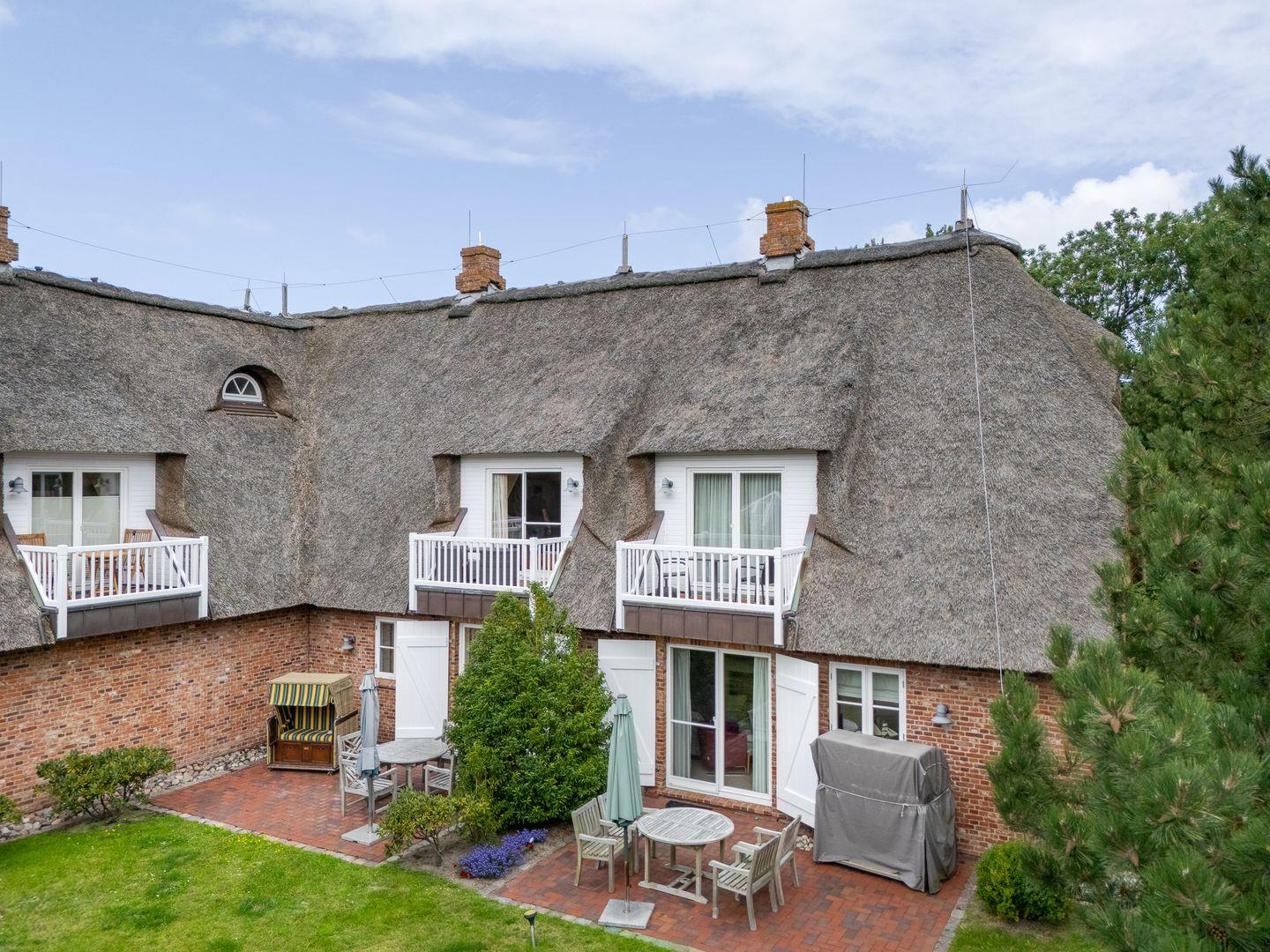 Gemütliche Reetdachwohnung im historischen Dorfkern von St. Peter-Ording mit Terrasse und modernem Komfort.