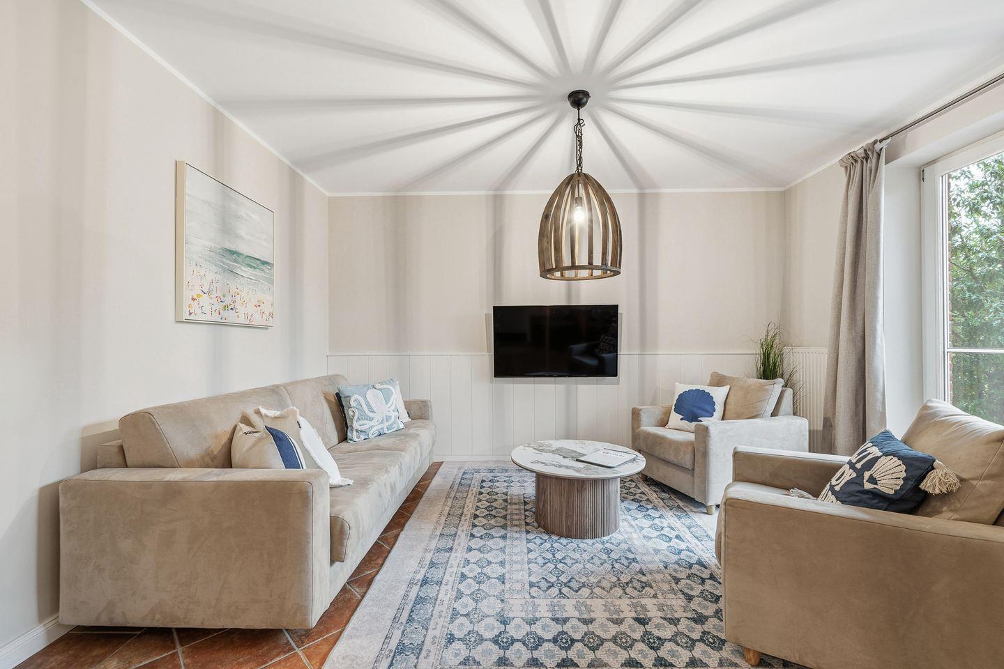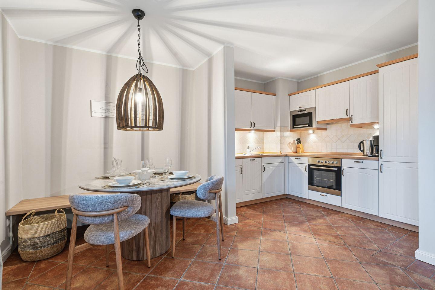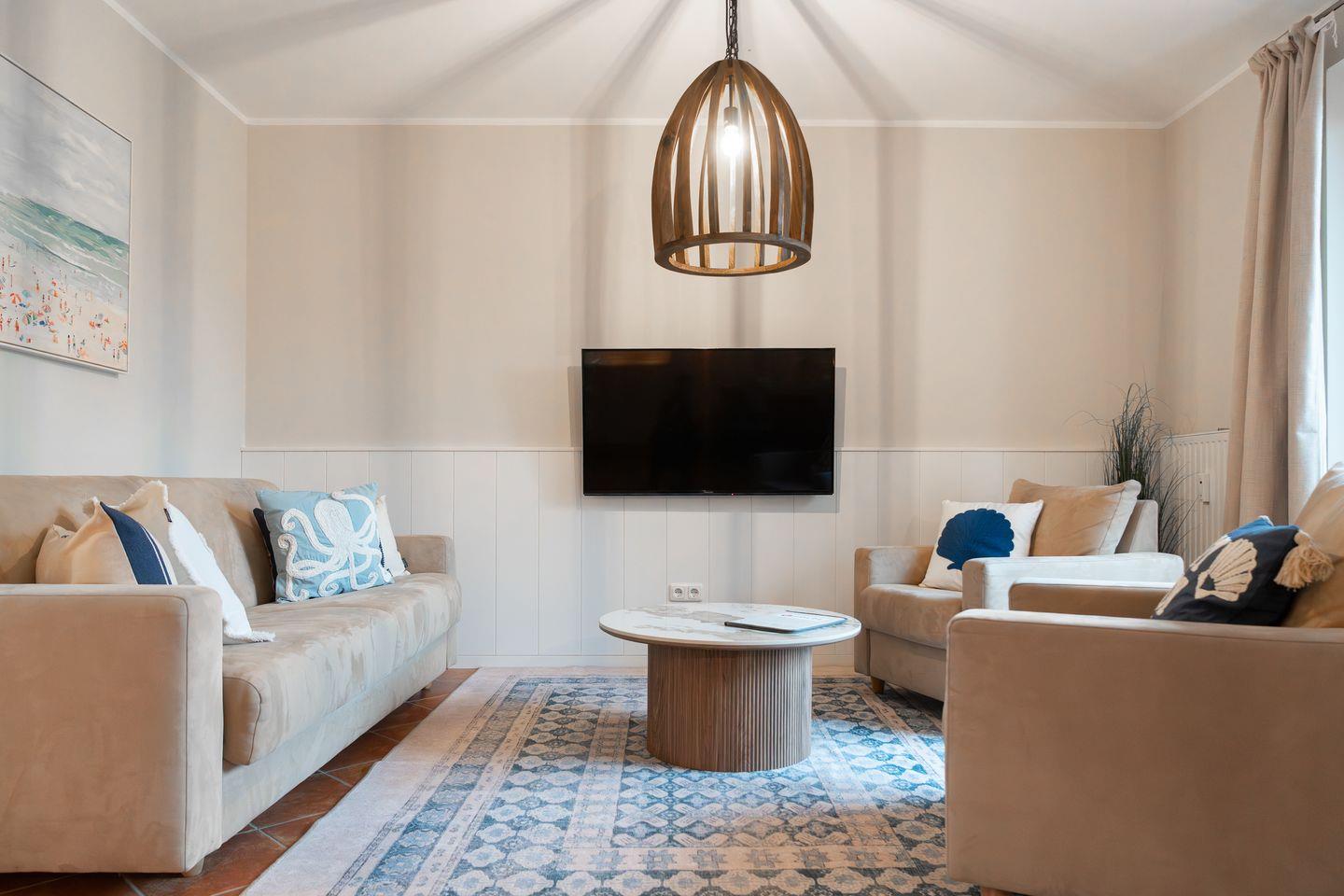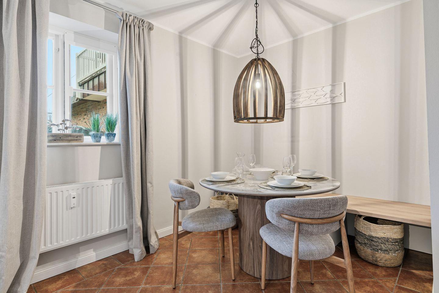 Gemütliche Reetdachwohnung im historischen Dorfkern von St. Peter-Ording mit Terrasse und modernem Komfort.