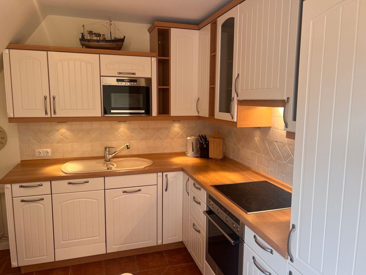 Die Landhausküche grenzt direkt am Wohnzimmer an. Das Duschbad bietet genügend Platz für Ihre Utensilien. Das Schlafzimmer mit einem 180er Doppelbett sorgt für ruhevolle Erholung. Ein weiteres Schlafzimmer befindet sich im Dachgeschoss. Ein PKW Stellplatz ist direkt am Haus vorhanden. Zudem haben Sie die Möglichkeit Ihre E-Bikes im Fahrradabstellraum sicher und trocken zu verstauen. Im Ferienobjekt ist max. ein Haustier zugelassen. Das Objekt wird im Winter renoviert und erhält im Januar 2026 neue Bilder.