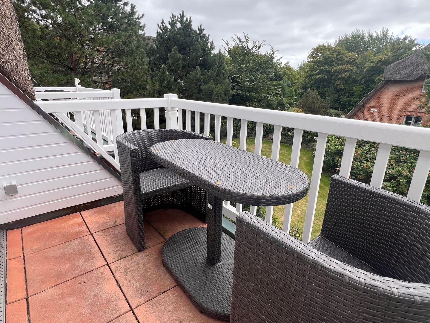 Charmante Ferienwohnung unter Reet im historischen Dorfkern von St. Peter-Ording mit Balkon und Blick auf den Bauerngarten.