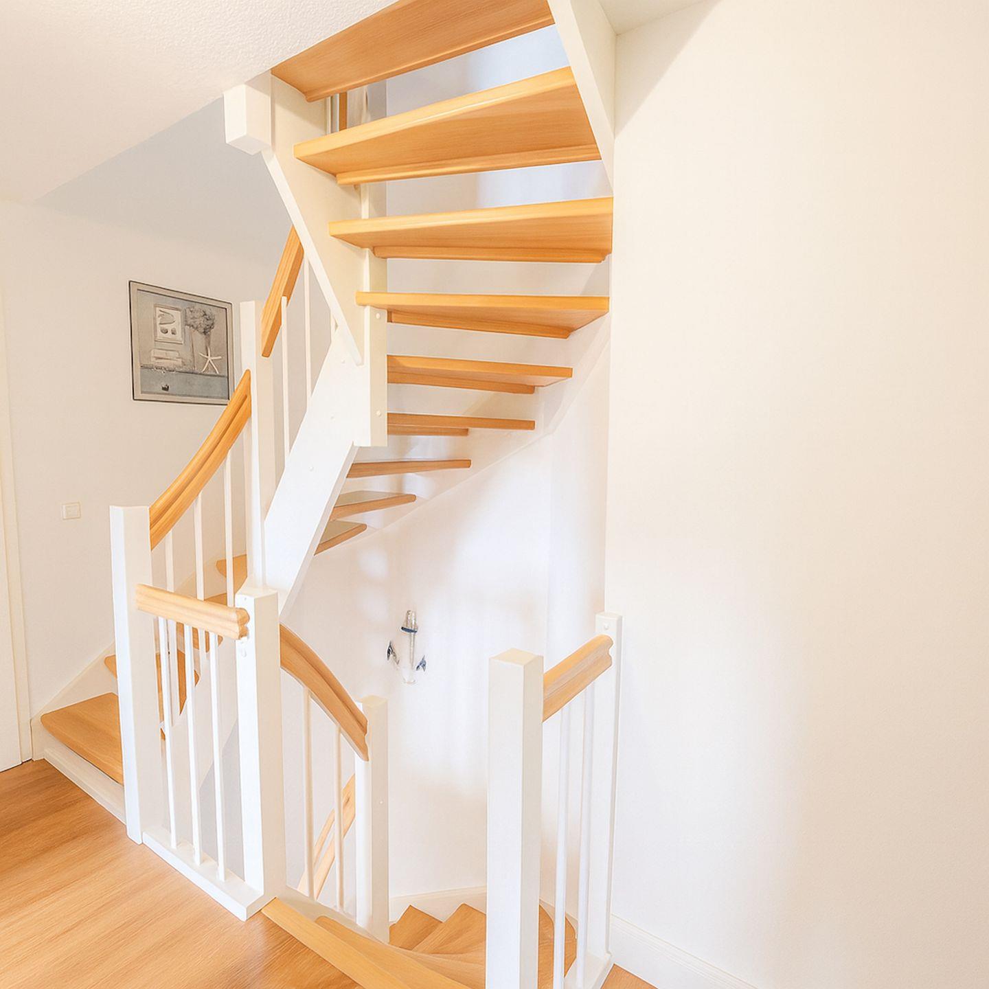 Die offene Küche ist komplett ausgestattet und lässt keine Wünsche offen, mit modernen Geräten wie einem 4-Felder-Herd, einem Backofen, einer Mikrowelle und einem Geschirrspüler. Im Obergeschoss befinden sich zwei großzügige Schlafzimmer – mit je einem großzügigen Doppelbett . Das helle Tageslichtbad bietet hohen Komfort mit einer geräumigen Dusche.