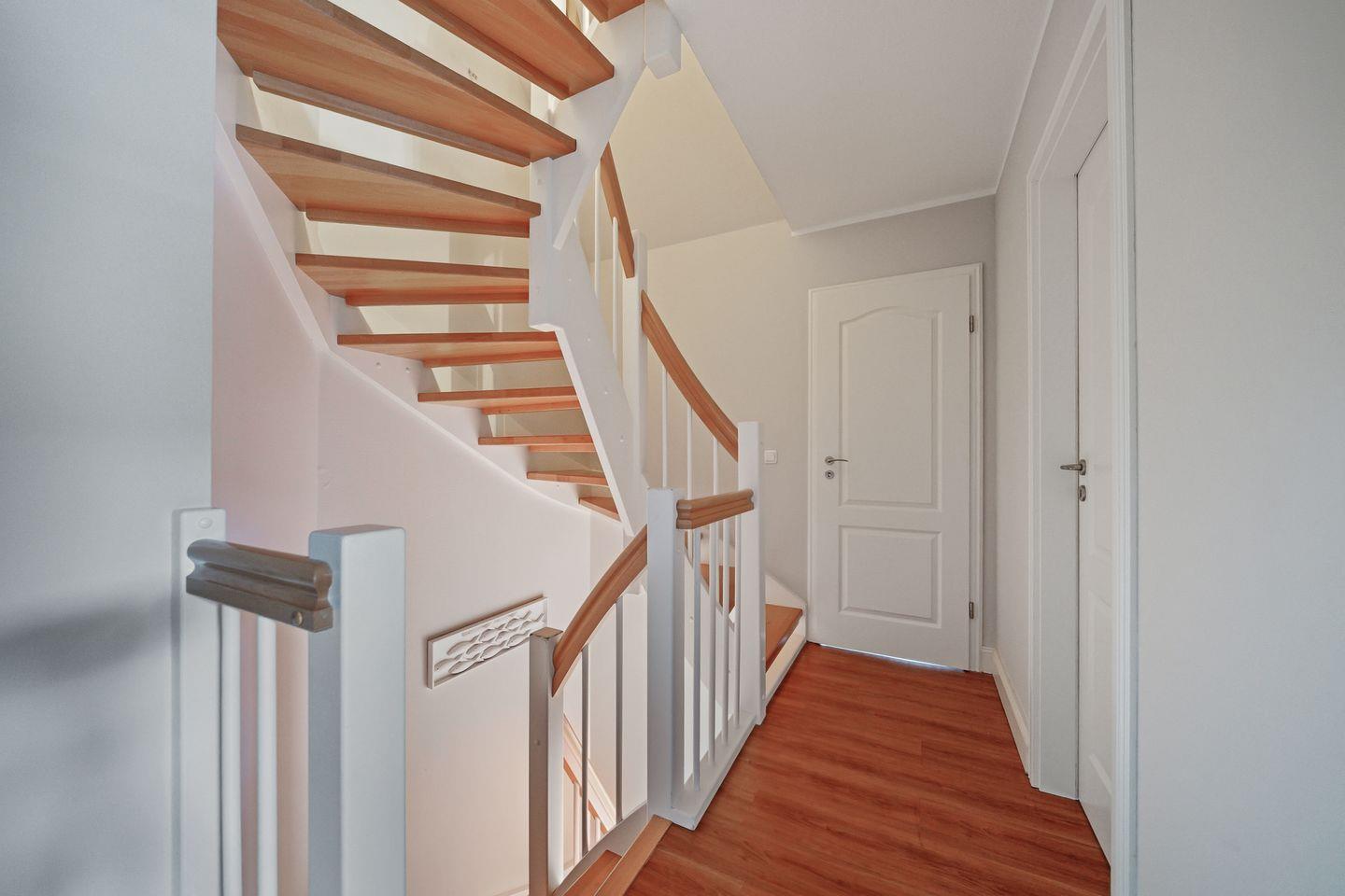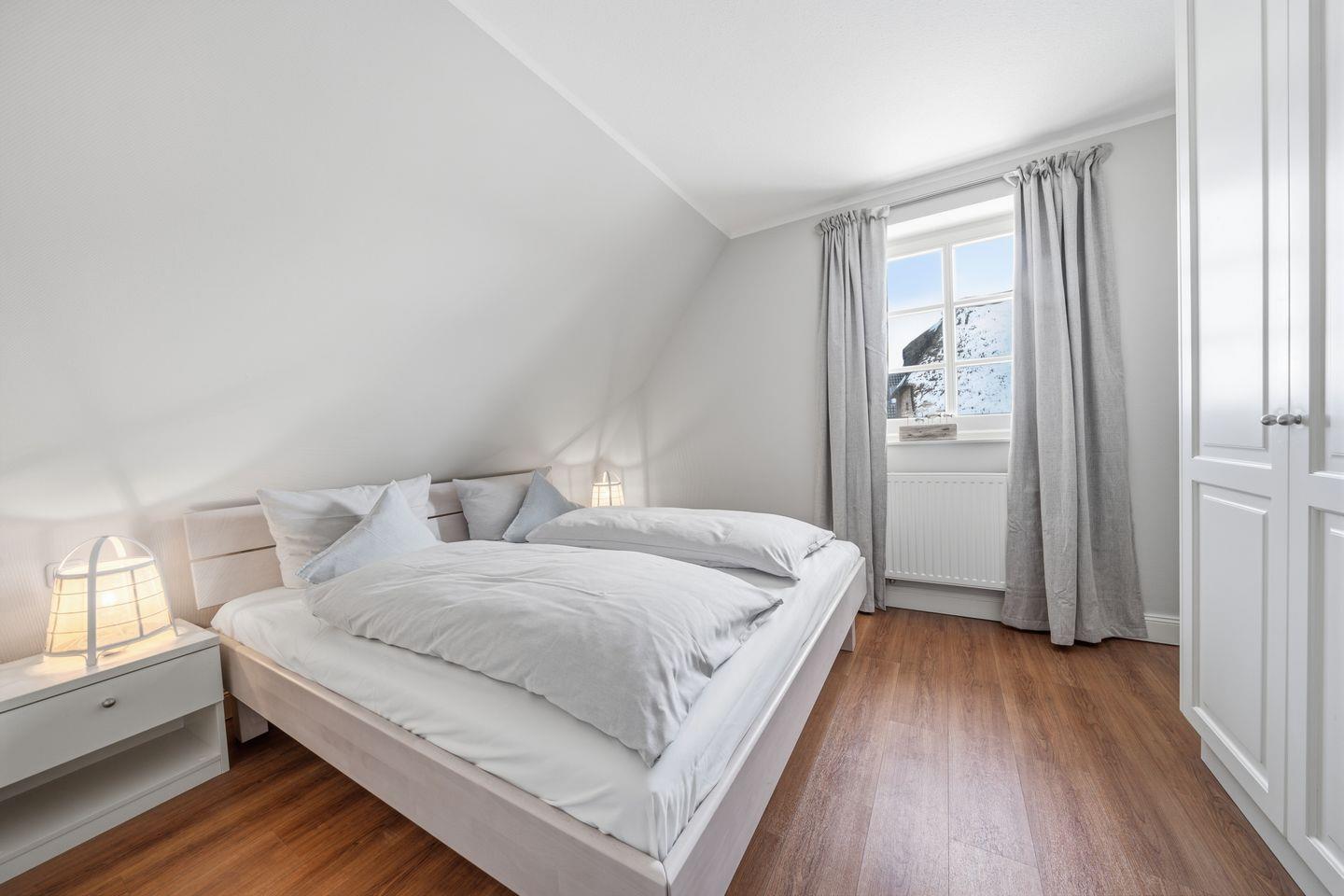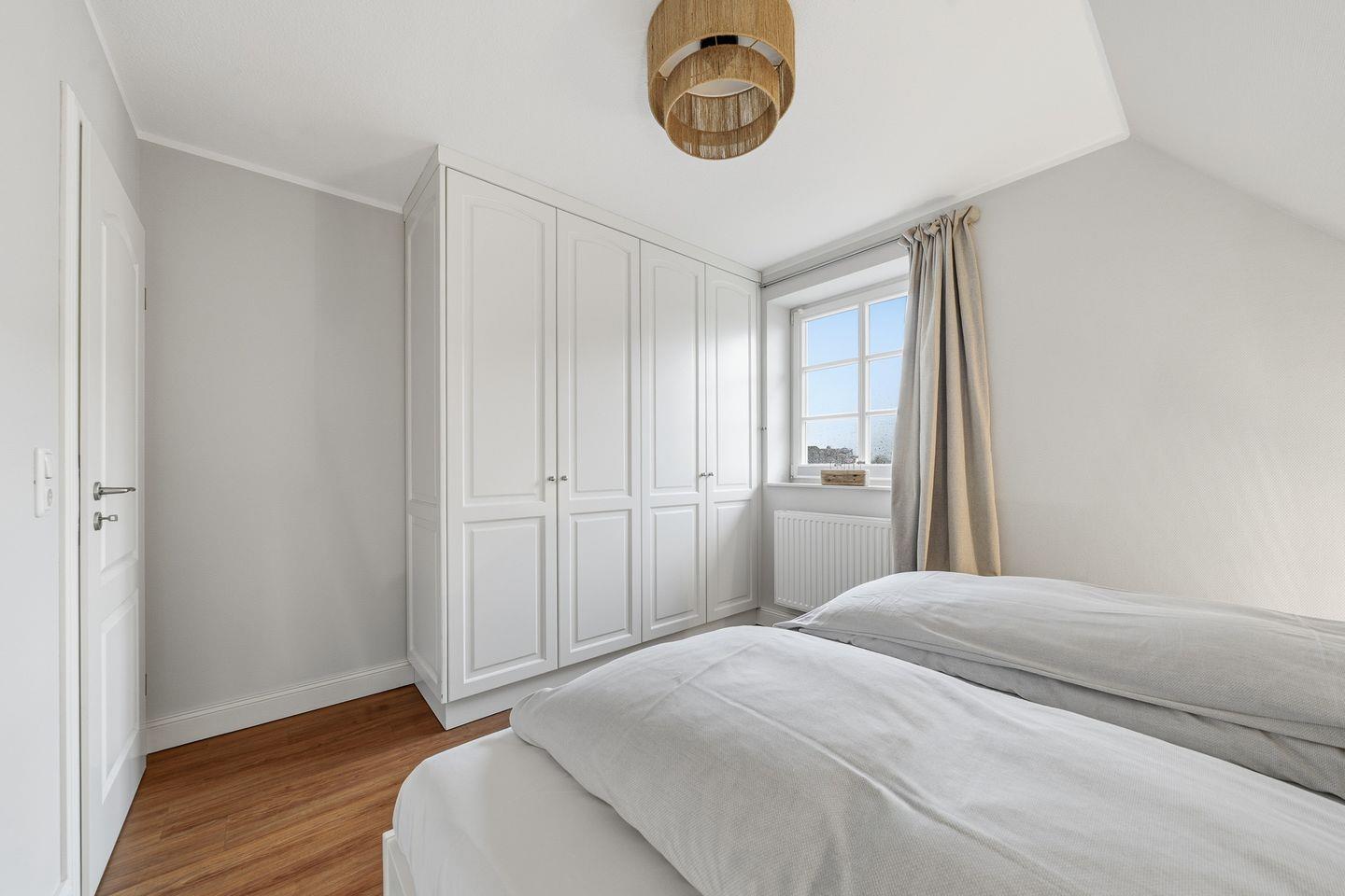 Im Obergeschoss befinden sich zwei großzügige Schlafzimmer mit je einem Doppelbett sowie Einbauschränken. Das helle Tageslichtbad bietet hohen Komfort mit einer geräumigen Dusche.
