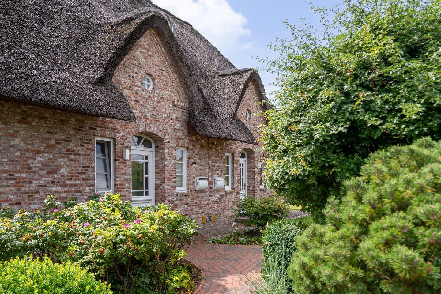 Gemütliches Doppelhaus unter Reet in Strandnähe von St. Peter-Ording mit Garten, Terrasse und moderner Ausstattung für erholsamen Urlaub.