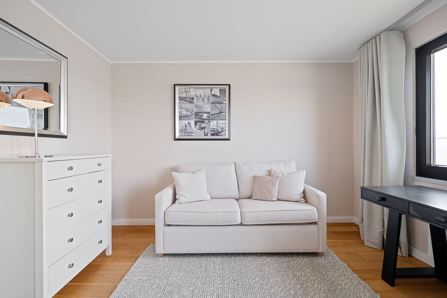 Das exklusive Penthouse ist mit dem Fahrstuhl bis zum 13. Stock erreichbar, das letzte Stockwerk nur über ein Treppenhaus und ist somit der höchste Punkt von St. Peter-Ording.
