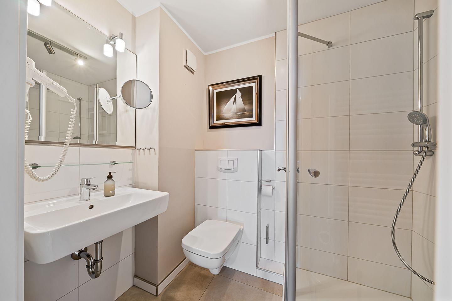 Die beiden modernen Duschbäder und das Vollbad sind wie kleine Wellness-Oasen, ausgestattet mit Radios für eine entspannte Atmosphäre. Nach einem erlebnisreichen Tag können Sie in der Sauna des Penthouse absolute Erholung finden und den Blick zum Westerhever Leuchtturm genießen.