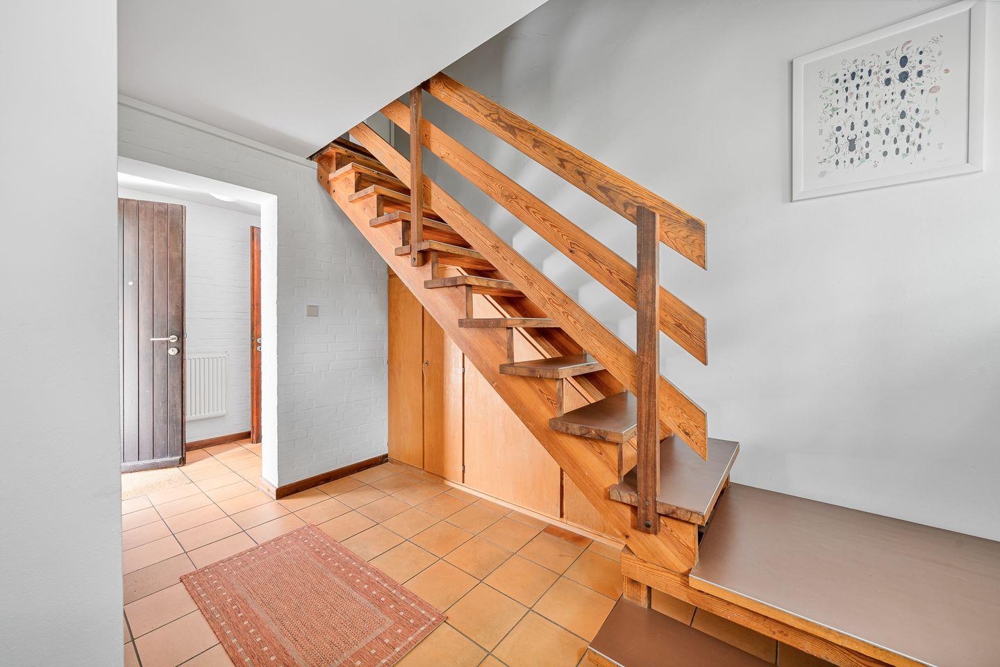 Über eine Holztreppe gelangen Sie in das Obergeschoss. Ein Schlafzimmer mit einem Doppelbett (1,80 x 2,00) ist ausgestattet mit einem großen Kleiderschrank. Darüber hinaus befindet sich im Obergeschoss ein weiteres Bad mit Dusche.