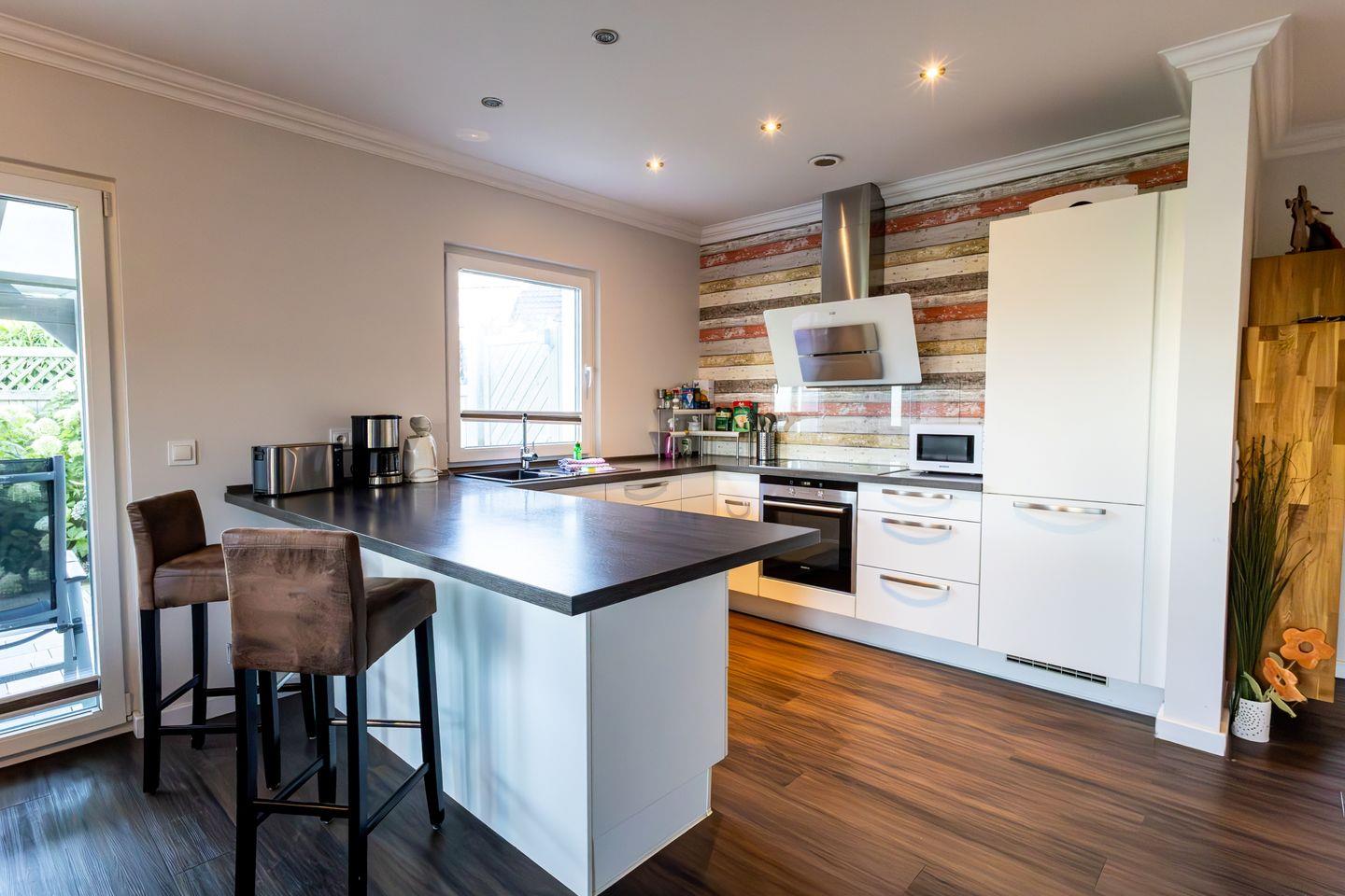 Erdgeschoss: Eingangsbereich, Duschbad/WC, großzügiger Wohnraum mit offener ,voll ausgestatteter Küche