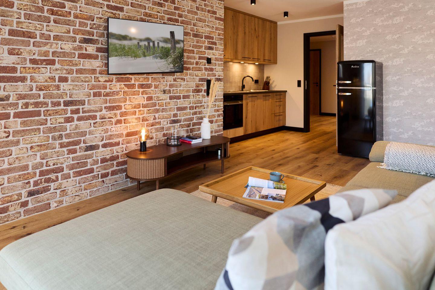 Modernes Apartment im Binnendiek Resort mit Wellnessbereich und Balkon nahe Strand und Stadt.