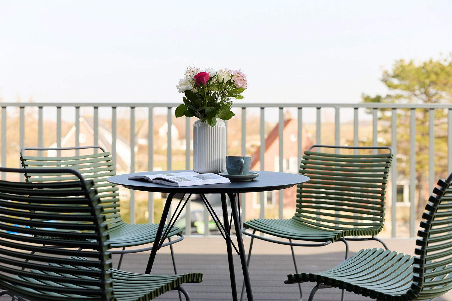 Die großzügige, möblierte Dachterrasse in Nord-Ost/Nord-West-Lage bietet Raum für entspannte Momente. Das Schlafzimmer ist mit einem komfortablen Doppelbett, Schrank und Smart TV ausgestattet. Ein Plus: ein eigener Balkon! Zudem verfügt das Apartment über ein modernes, mit anthrazitfarbenen Natursteinfliesen gestaltetes Badezimmer.