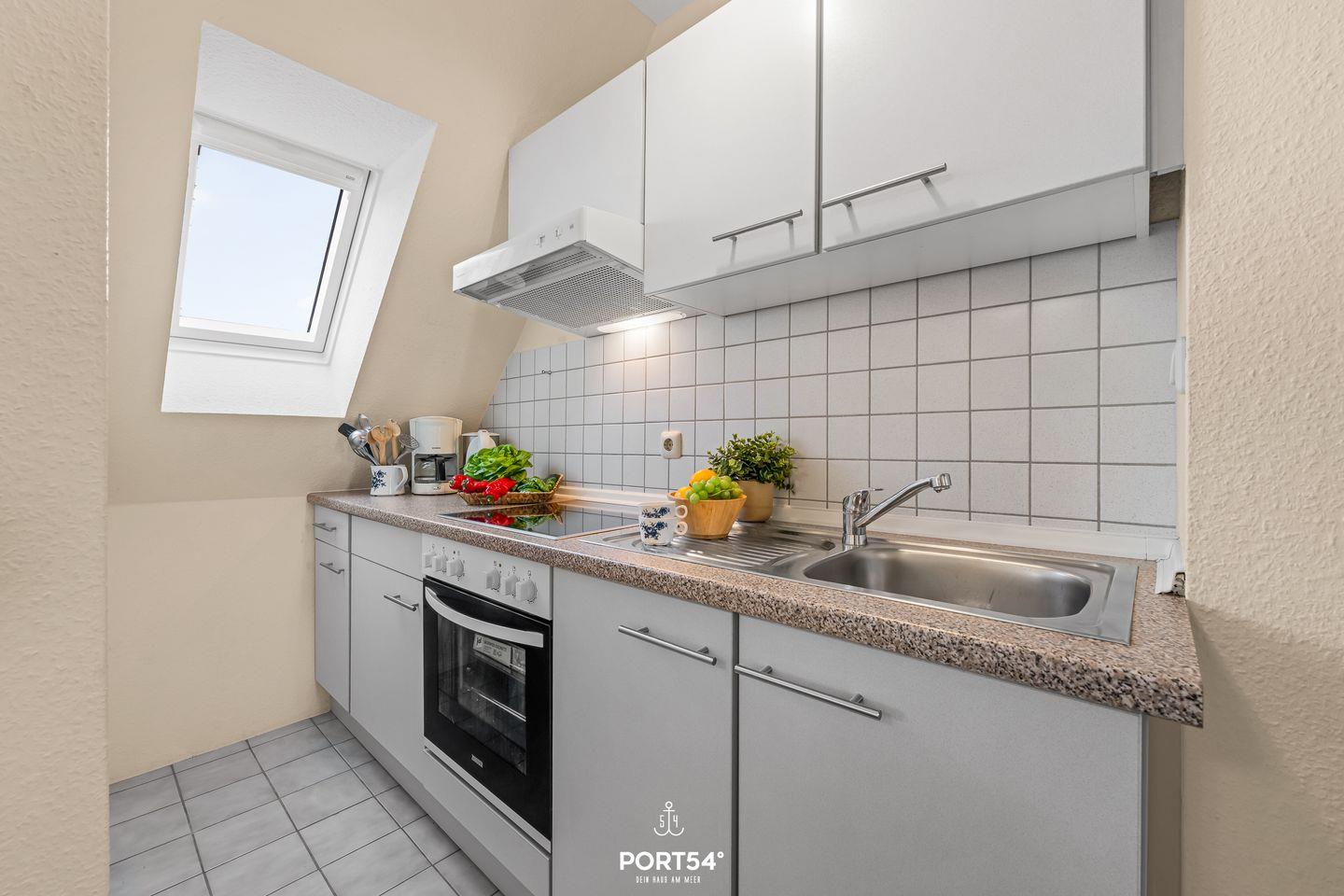 Die offene Küche ist voll ausgestattet und eignet sich ideal zur Selbstversorgung. Sie verfügt über eine moderne Spülmaschine, einen 2-Platten-Herd, einen Kühlschrank mit integriertem Gefrierfach, eine Mikrowelle, einen Toaster, einen Wasserkocher, eine Kaffeemaschine und einen Mixer. Geschirr und Besteck sind in ausreichender Anzahl vorhanden, sodass Sie bequem leckere Mahlzeiten zubereiten können. Ein Staubsauger steht für die tägliche Reinigung bereit.