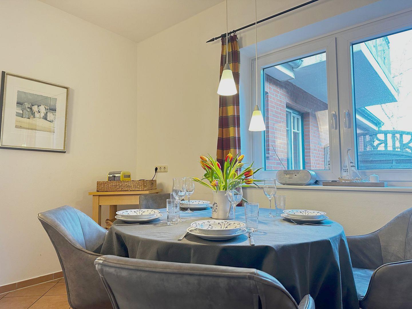 Die Wohnung liegt im Erdgeschoss und ist maritim mit viel Liebe zum Detail eingerichtet. Helle Farben und geschmackvolle Dekorationen schaffen eine angenehme Wohlfühlatmosphäre.