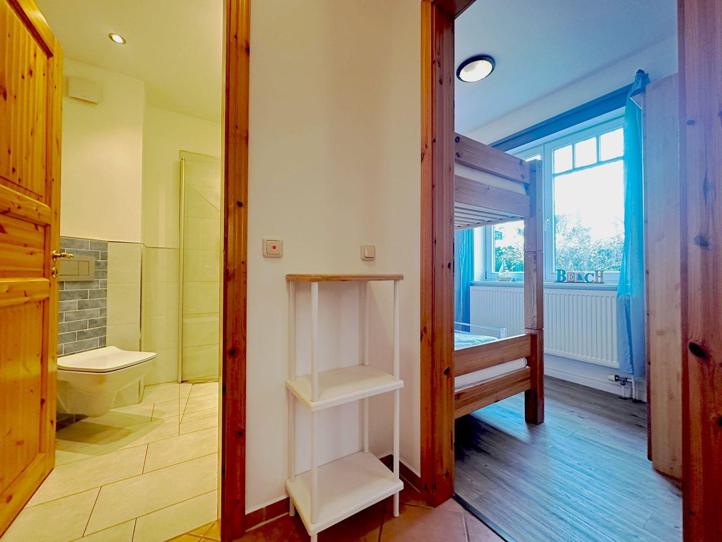 Es stehen zwei separate Schlafzimmer zur Verfügung: ein Schlafzimmer mit Doppelbett ein weiteres Schlafzimmer mit Etagenbett, beide Schlafzimmer verfügen über Verdunklungsmöglichkeiten und einen Kleiderschrank.
