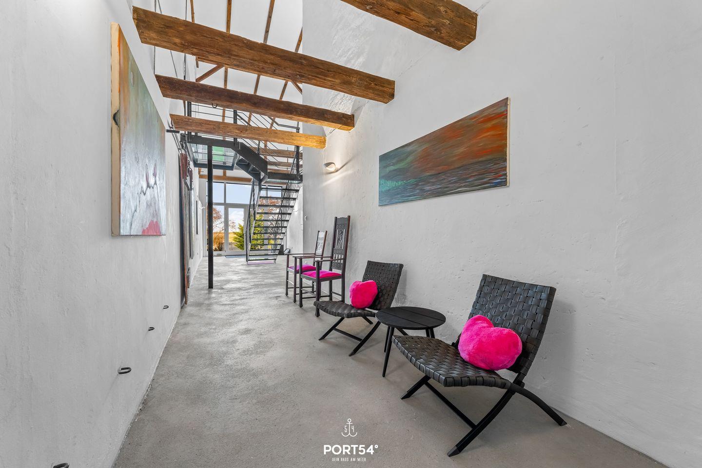 Der Wohnbereich ist offen und einladend gestaltet. Eine Sofaecke, ein Essbereich mit Esstisch sowie die zum Wohnzimmer offene Küche schaffen viel Platz für gemeinsame Zeit. Die Küche ist umfassend ausgestattet und bietet Dir unter anderem Induktionsherd, Backofen, Mikrowelle, Spülmaschine, Kühlschrank, extra Gefrierschrank, Wasserkocher, Toaster und Kaffeemaschine. Küchenutensilien, Geschirr und Besteck sind ebenfalls vorhanden. Für zusätzlichen Komfort steht Dir Waschmaschine und Trockner zur Eigennutzung, Bügeleisen, Bügelbrett, Wäscheständer, Staubsauger sowie ein Safe zur Verfügung.