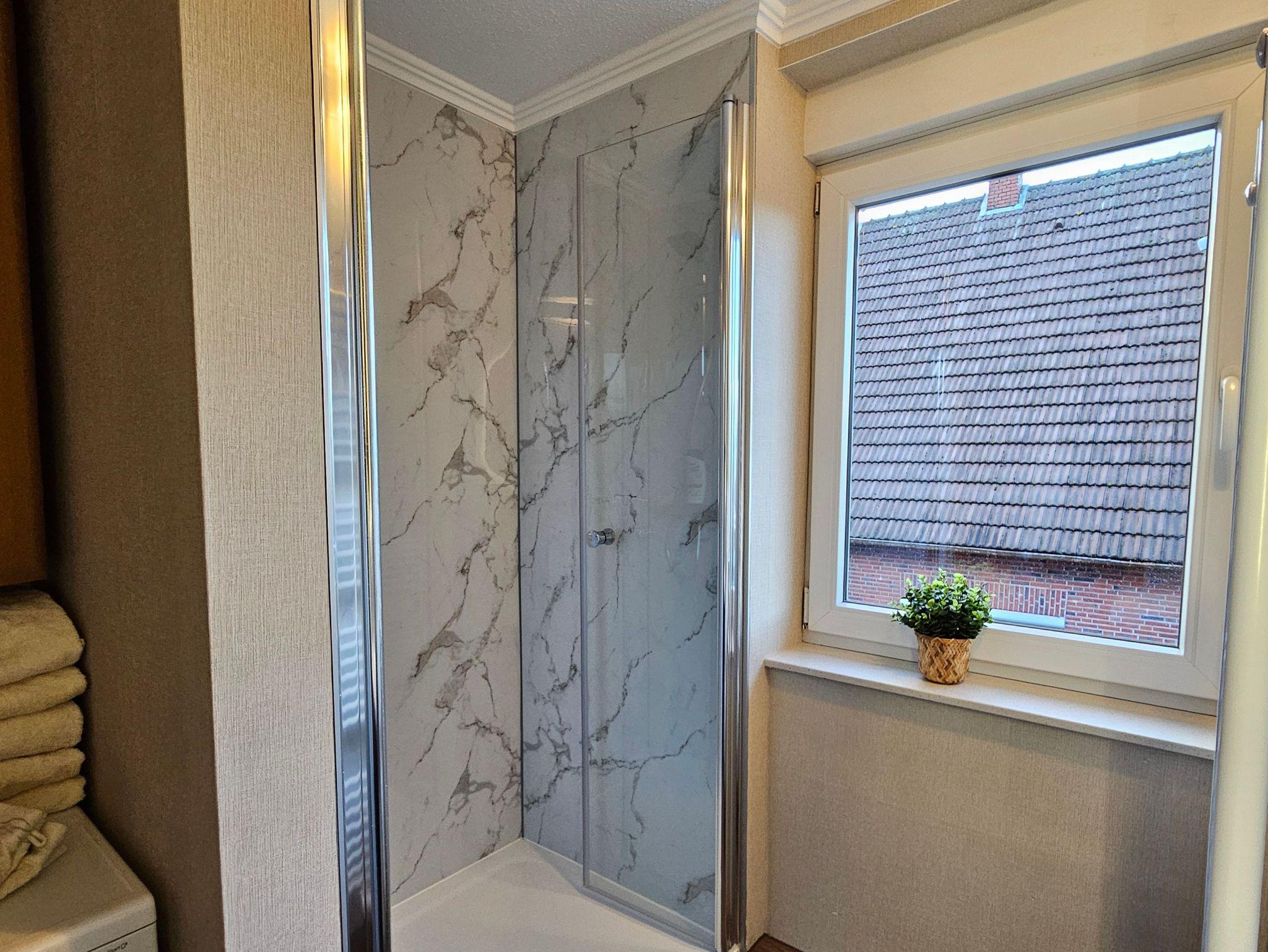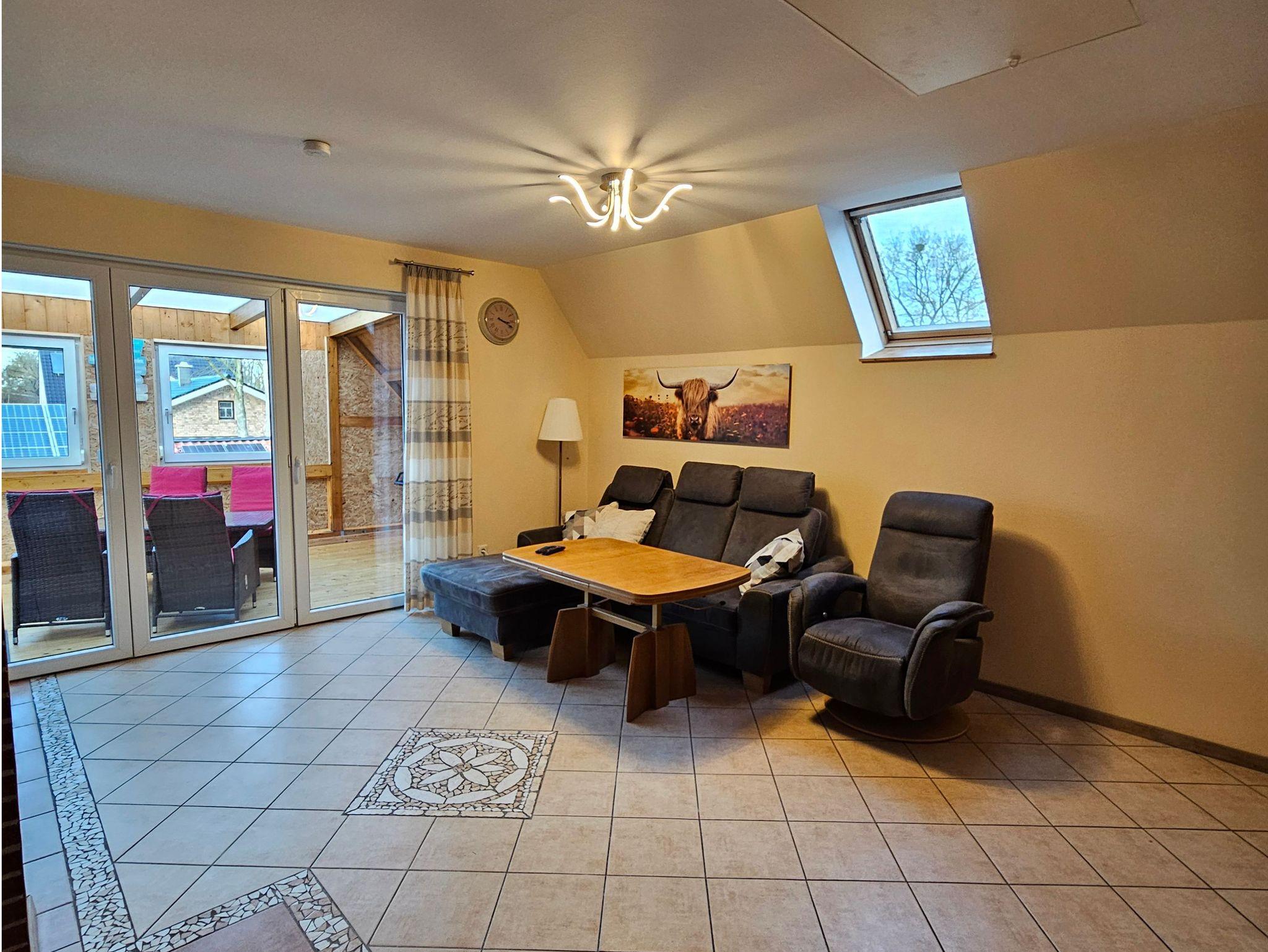 Oberwohnung , Nichtraucher, Außentreppe, Dachterrasse, Fliesen, Designbelag, Teppich, Wintergarten unbeheizt, Betten mit elektrisch einstellbarem Lattenrost, Doppelbett 2m x 2m, separate Küche mit Essbereich, Kaffeevollautomat, Fahrradunterstellmöglichkeit mit Stromanschluss zur Akkuladung (kein Ladegerät)