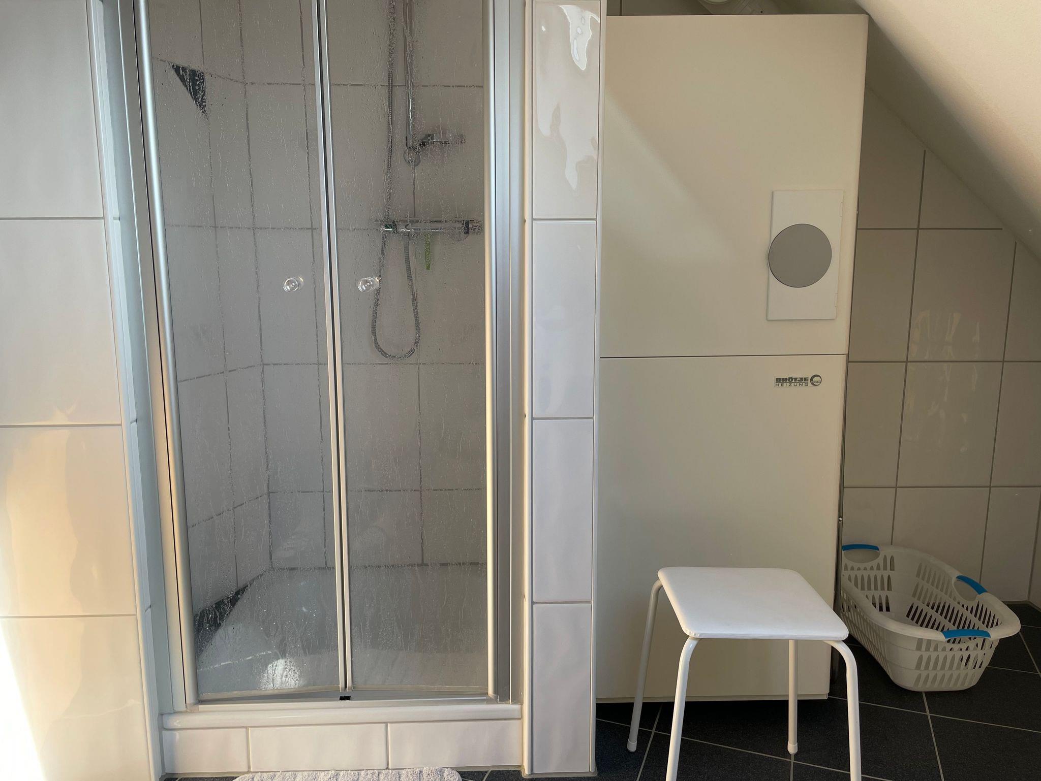 • Es verfügt über eine Dusche, Waschbecken und eine Toilette