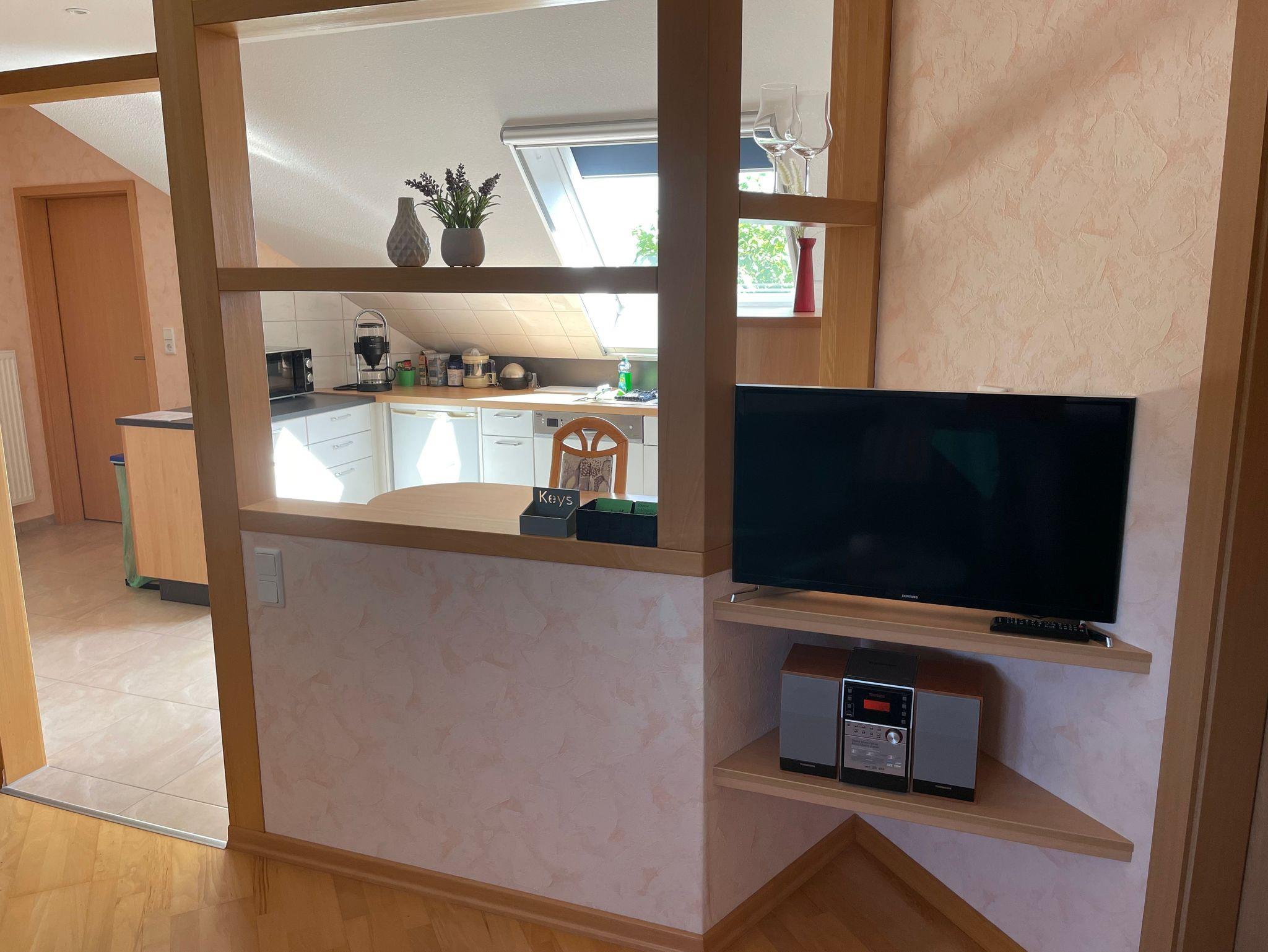 Die 5 Sterne Ferienoberwohnung, mit separater Treppe und Eingang, bietet ca. 81 m² Wohnfläche mit Platz für 2 Personen und ist komplett möbliert und mit allem ausgestattet, was gebraucht wird.
