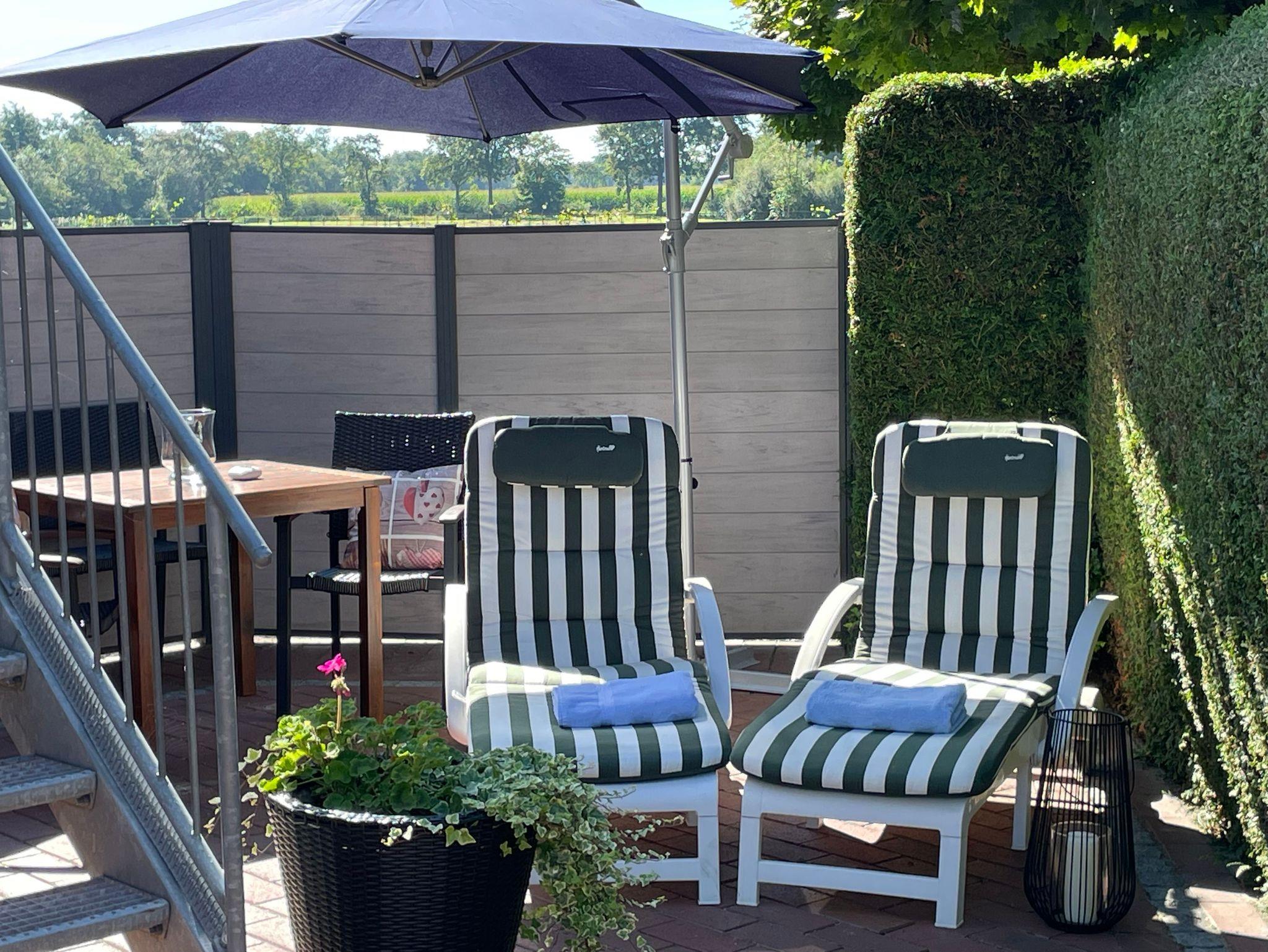 • Bei Bedarf zwei Liegen mit Auflagen und Sonnenschirm