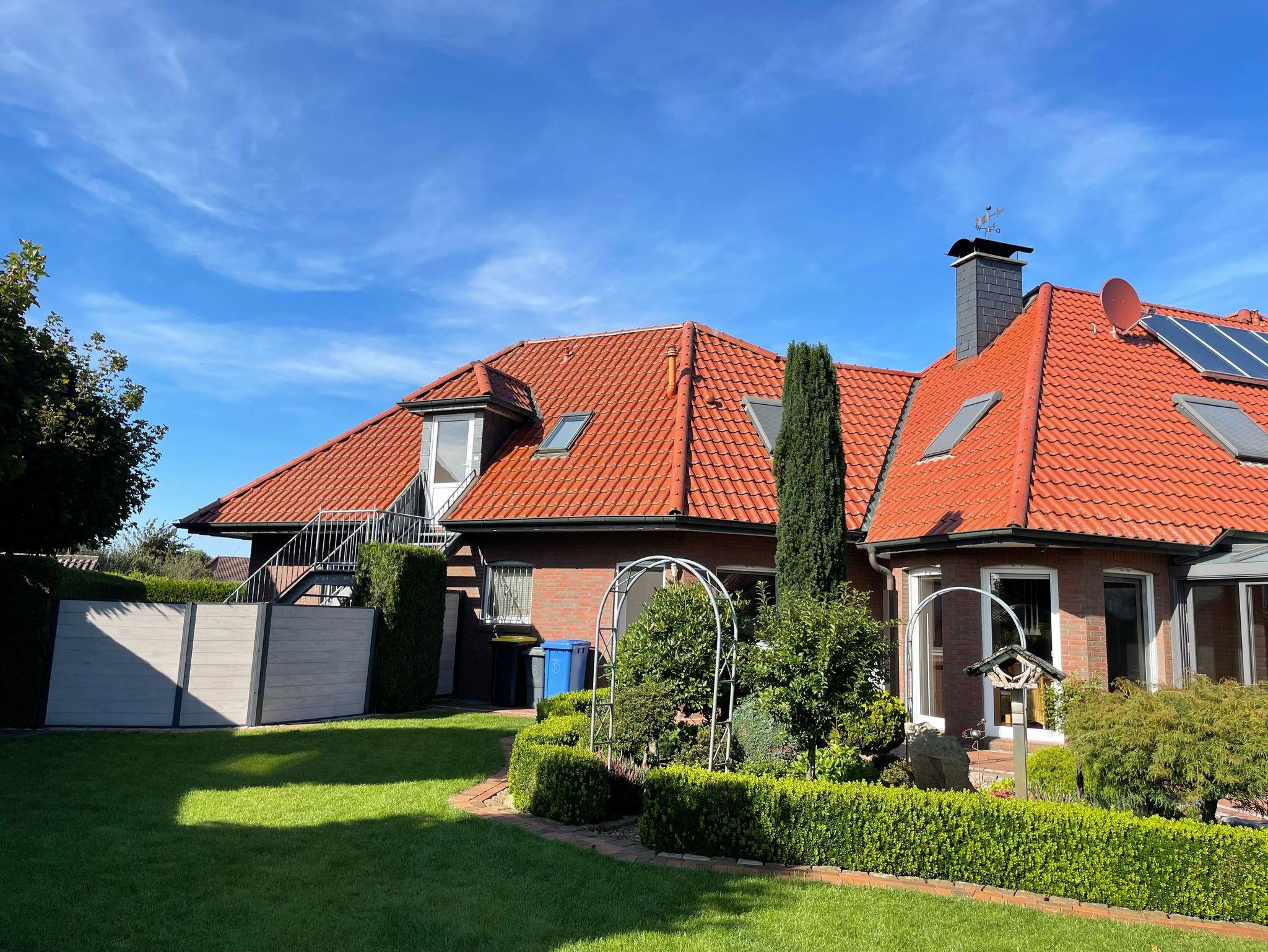 Die Ferienoberwohnung (ca. 81m², mit separatem Treppenaufgang) liegt in einer ruhigen Lage am Ende einer Sackgasse, so dass kein Durchgangsverkehr stört. Familie Dumstorff sind: Ebby und Gerd, 2 Söhne und der Familienhund Sam, ein Labrador.