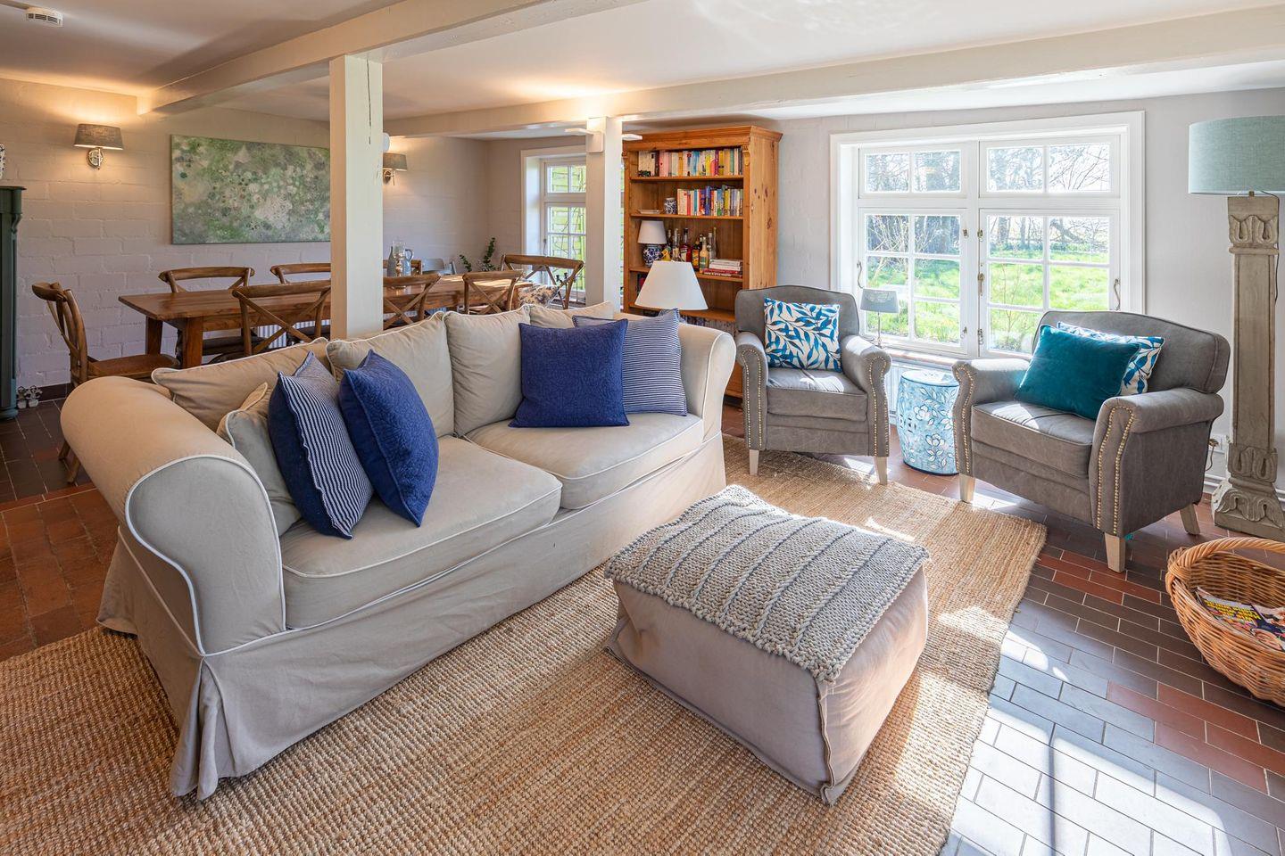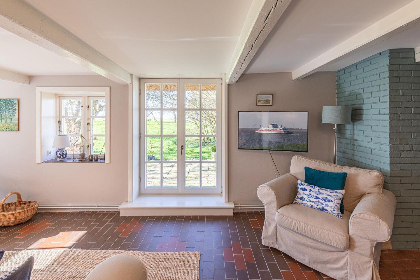 Erleben Sie Erholung im historischen Zollhaus mit Reetdach, modernem Landhausstil und großem Garten nahe Nordsee und Naturbadestelle.
