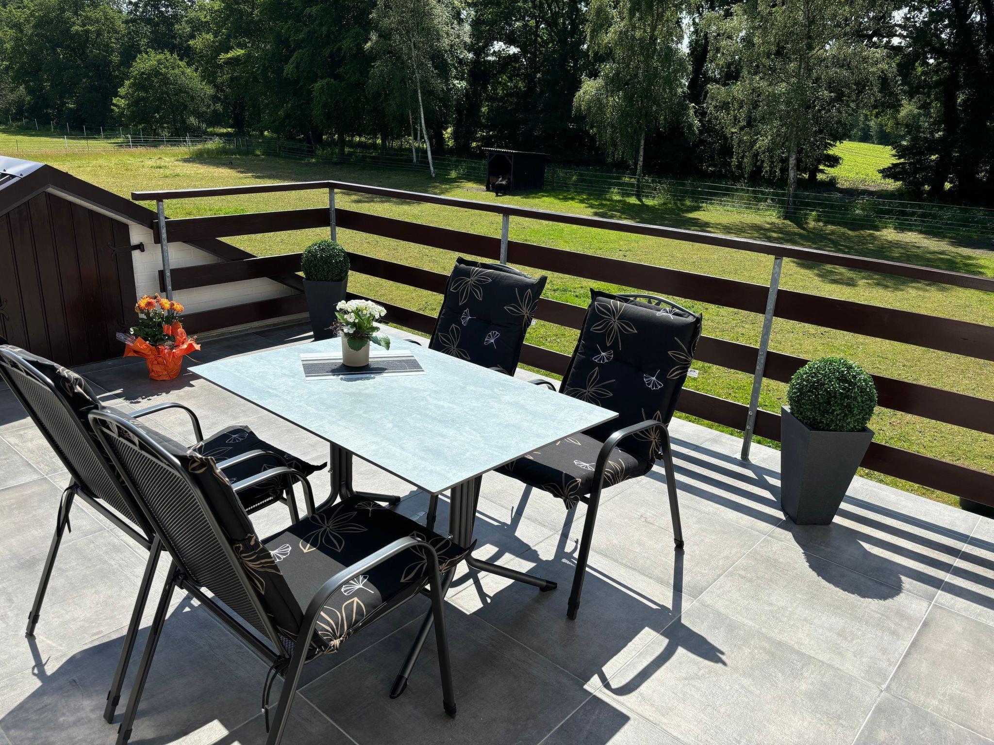 Sonnige Stunden können Sie auf der nach Süden ausgerichtete komplett möblierte Dachterrasse mit Blick auf die Natur genießen.