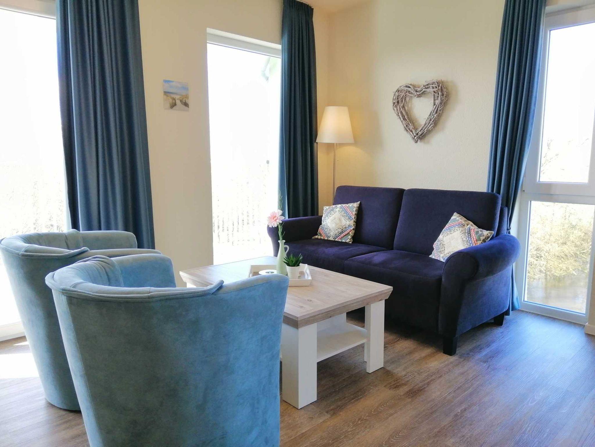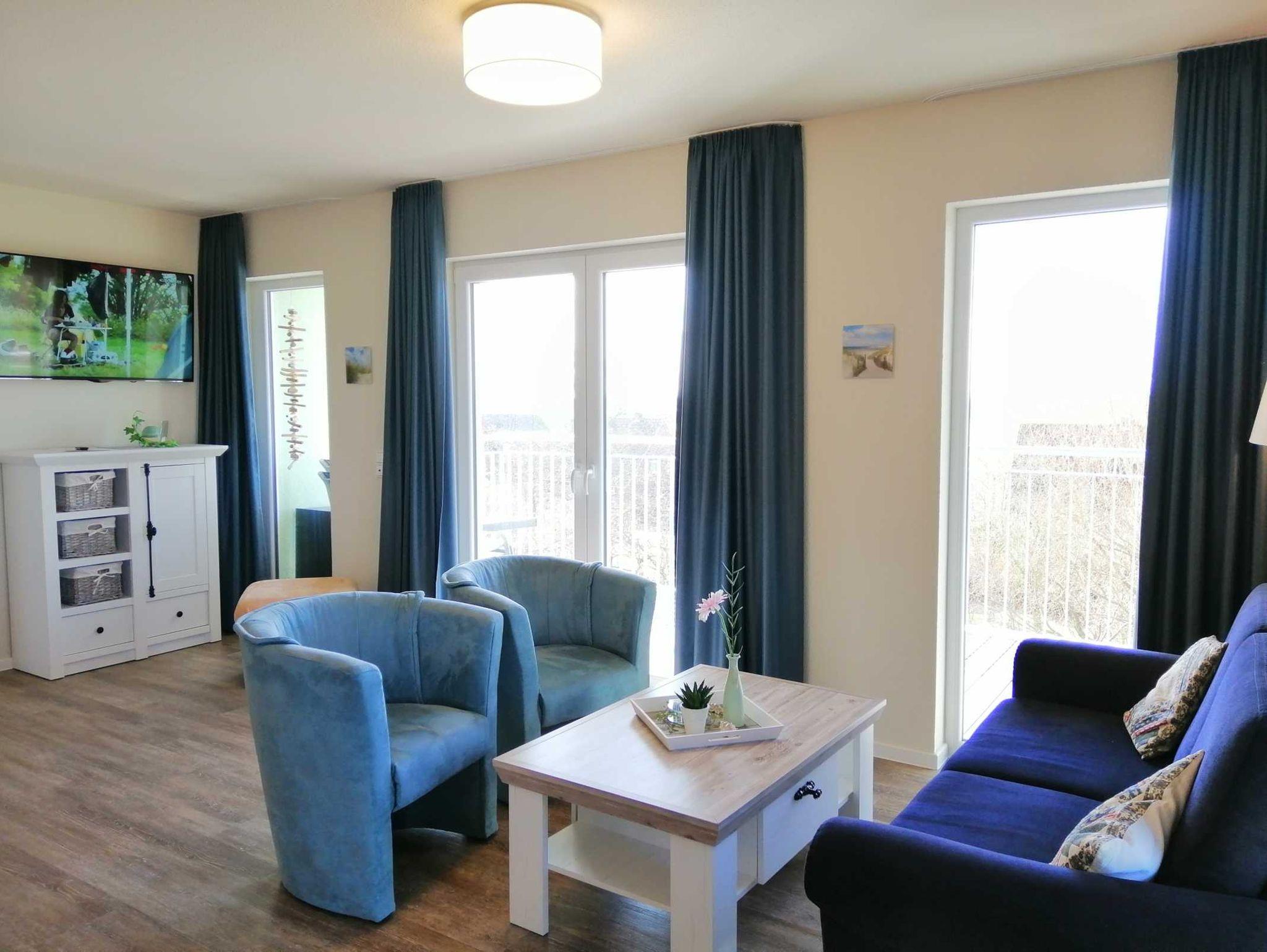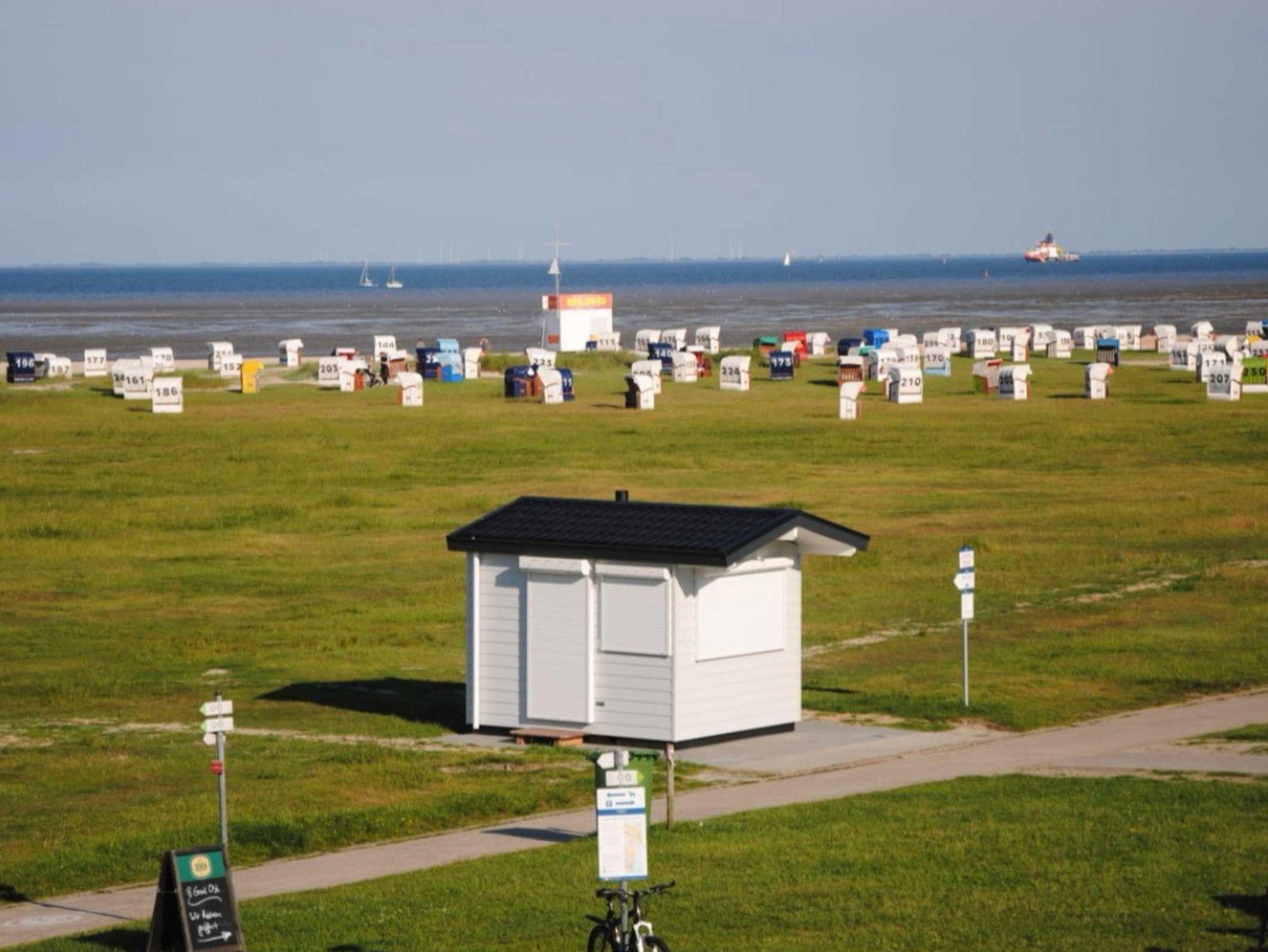 Moderne Ferienwohnung in Schillig mit Sauna, Balkon und seitlichem Meerblick, ideal für entspannte Tage an der Nordsee.