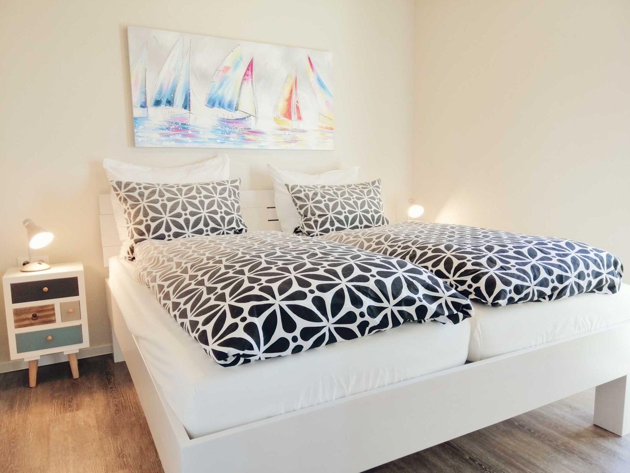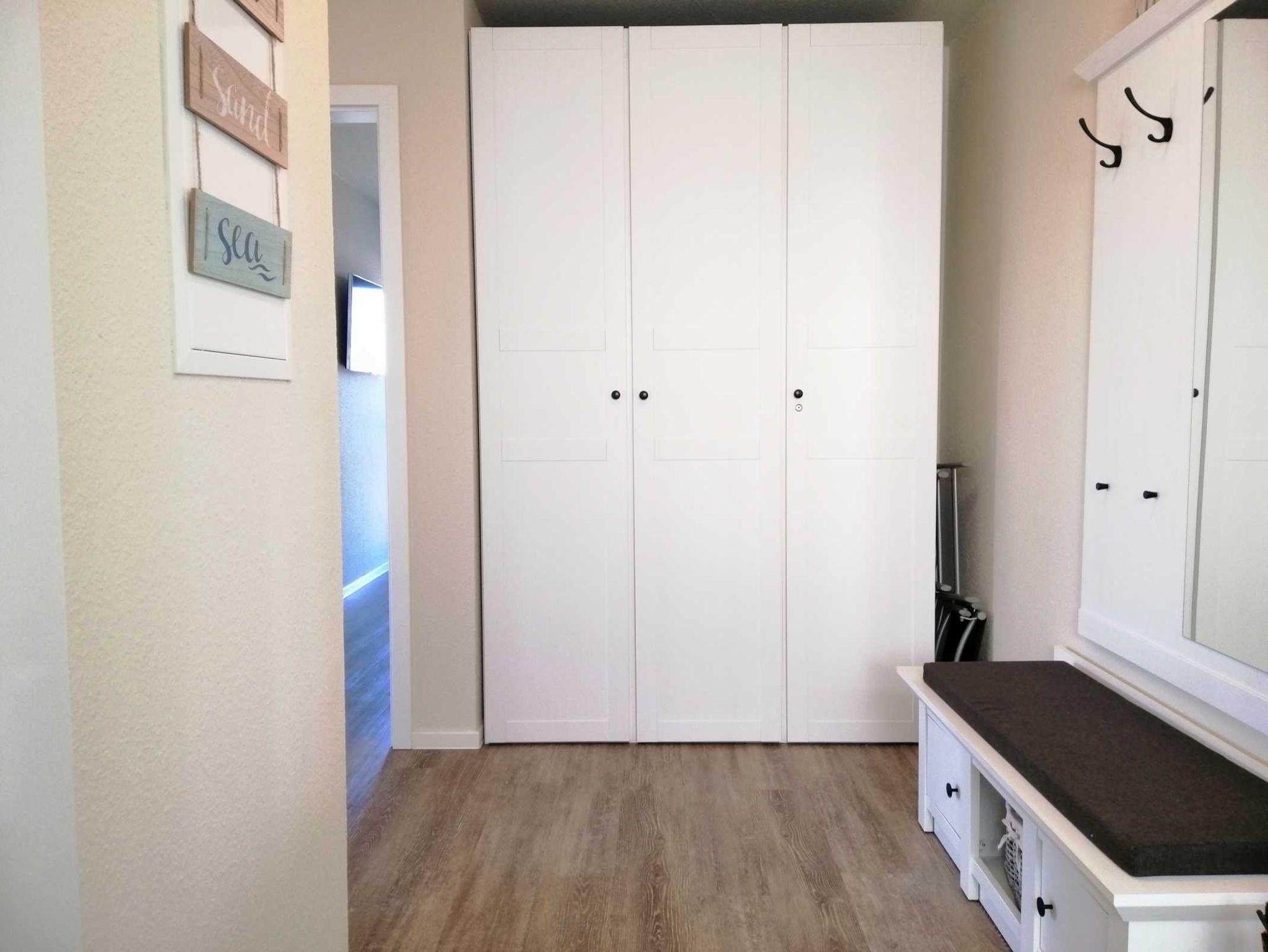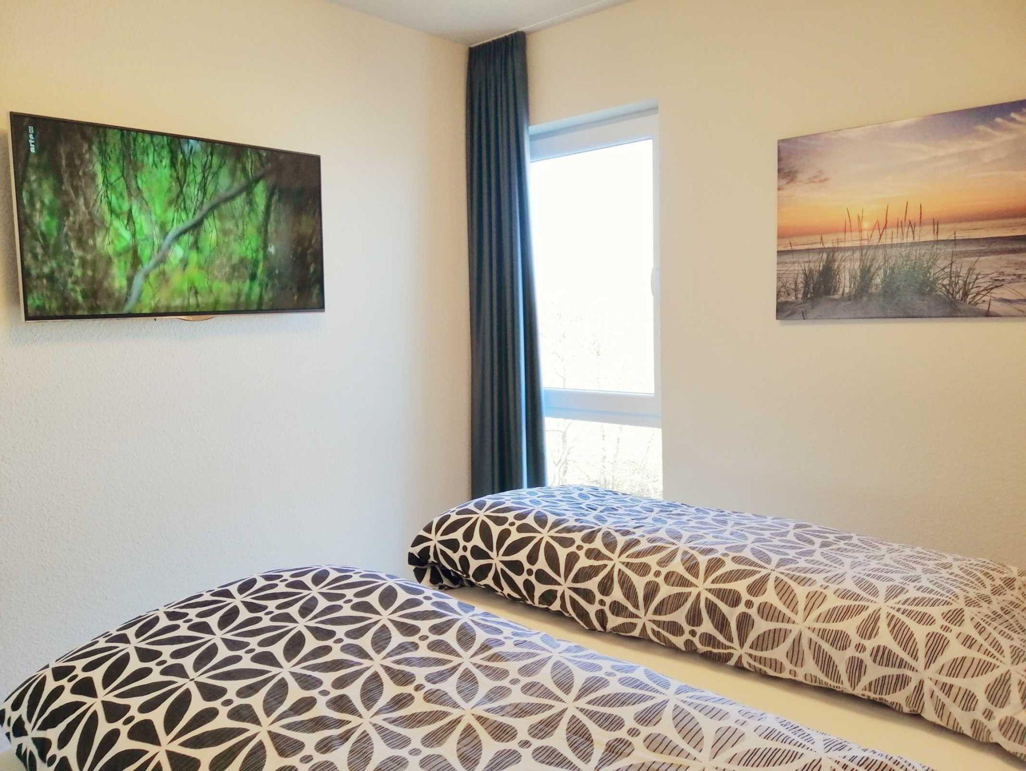 Moderne Ferienwohnung in Schillig mit Sauna, Balkon und seitlichem Meerblick, ideal für entspannte Tage an der Nordsee.