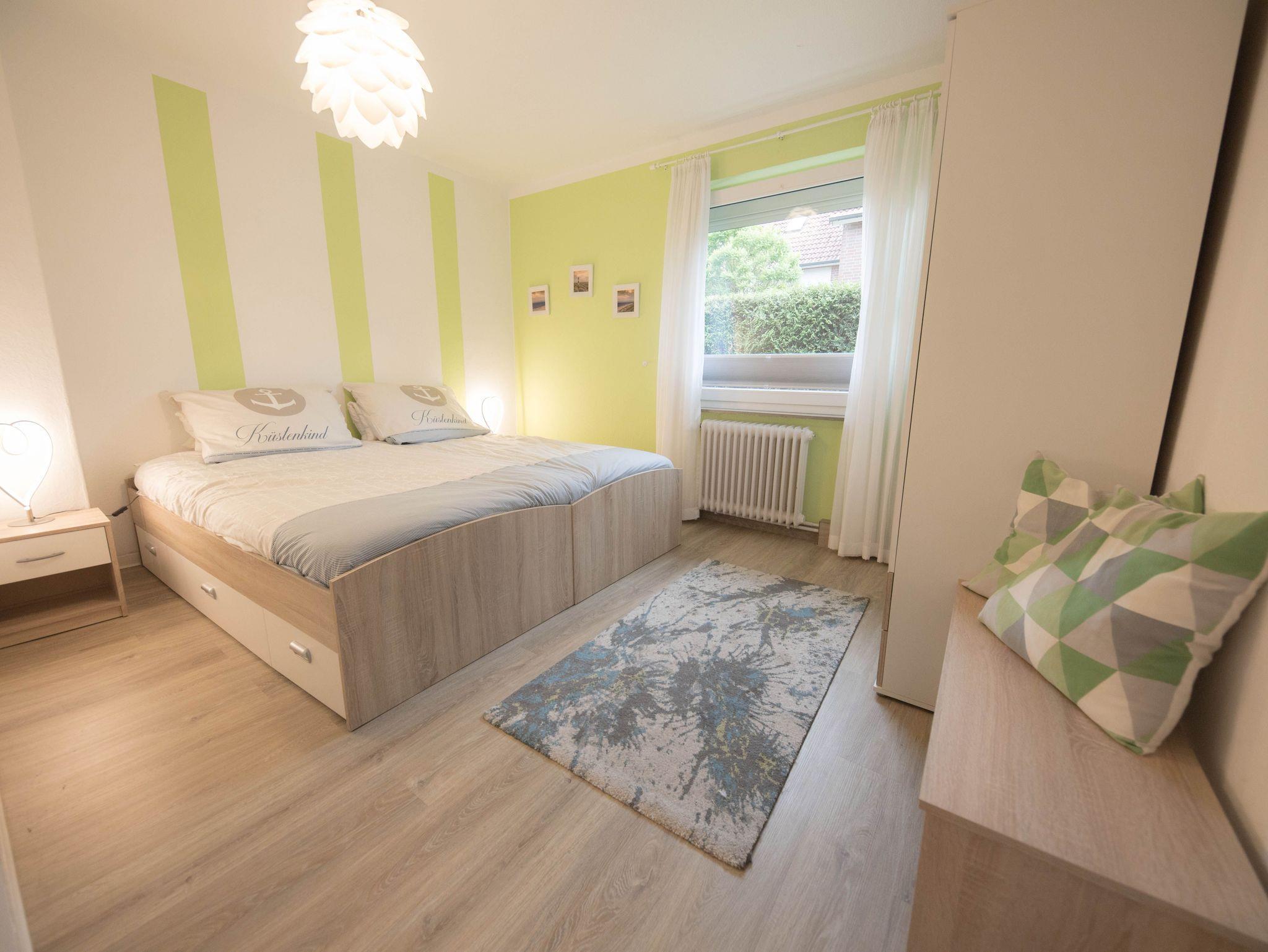 Die ebenerdige Ferienwohnung Norderney verfügt über ein Schlafzimmer mit Doppelbett sowie ein Schlafzimmer mit zwei Einzelbetten , eine separate Küche, ein Wohnzimmer mit Schlafsofa sowie ein Badezimmer.