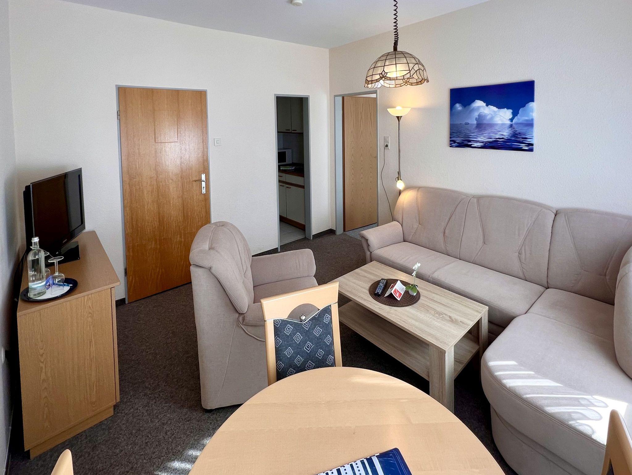 Die 2-Raum Ferienwohnung ist für für 2 Personen ausgestattet. Die Ferienwohnung besteht aus einem Wohnraum mit Sitzecke, TV, einer Küchenzeile, einem Schlafraum mit Doppelbett und einem Bad mit Dusche/WC. In dieser FW sind Haustiere erlaubt.
