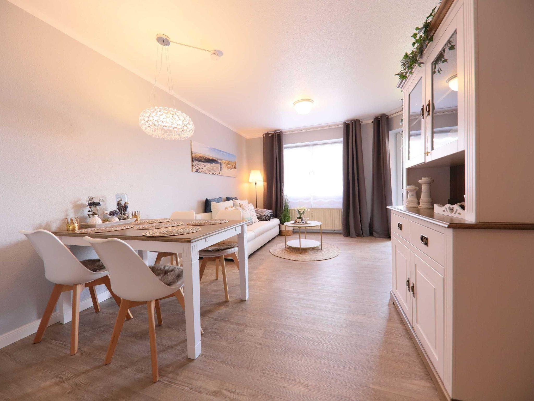 Moderne Ferienwohnung direkt am Strand von Schillig mit Balkon, WLAN und Haustierfreundlichkeit für einen erholsamen Urlaub.