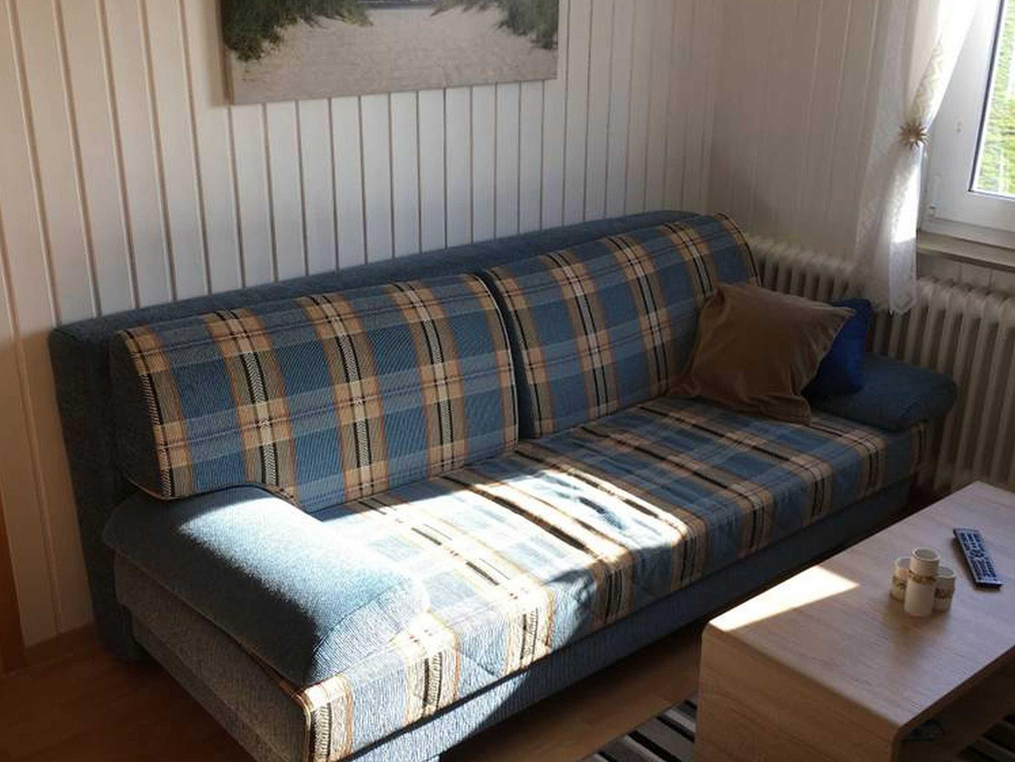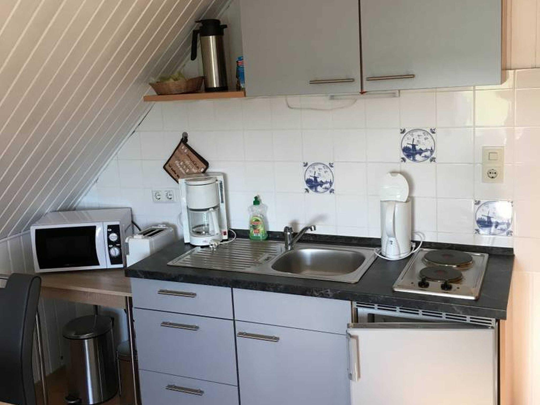 Die Ferienwohnung Baltrum verfügt über ein Wohnzimmer mit Schlafcouch und offener Küche sowie einem Schlafzimmer mit einem Doppelbett. Die Wohnung verfügt über ein Badezimmer mit Dusch und WC.