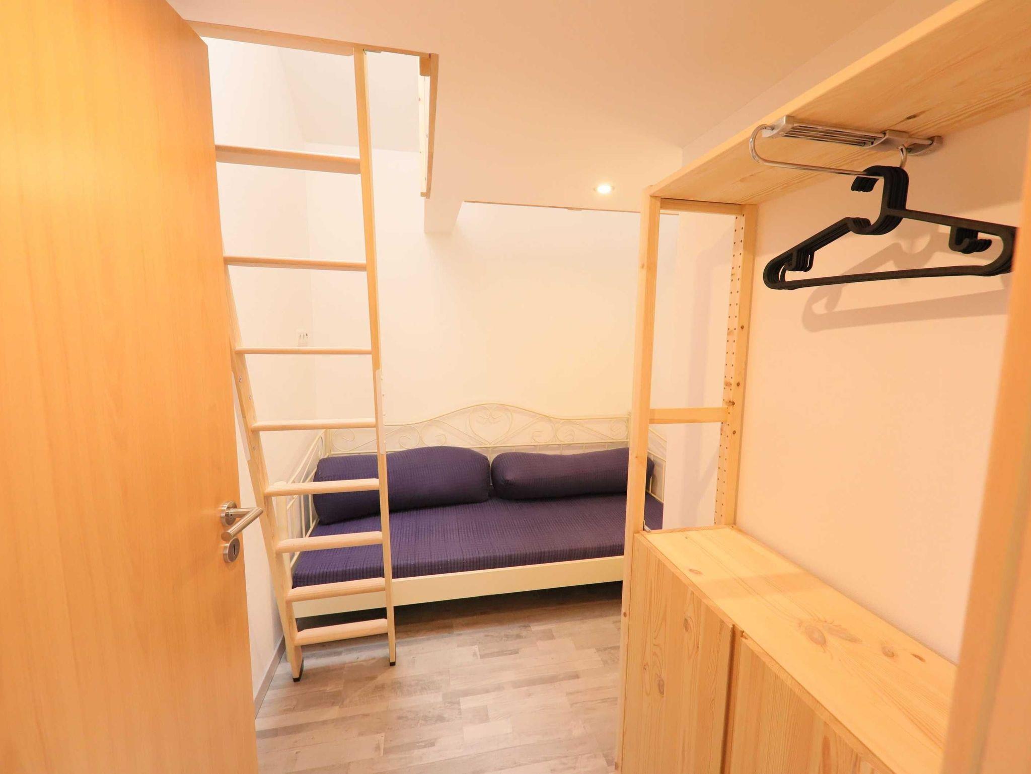 Über die Treppe am Essbereich gelangen Sie auf die Galerie. Die Deckenhöhe beträgt hier allerdings nur 1,50 Meter. Der Galerie schließt sich das 3. Schlafzimmer mit 2 Einzelbetten an. Hier beträgt die Raumhöhe ebenfalls nur 1,50 Meter, so dass sich dieses Schlafzimmer für Kinder anbieten würde.