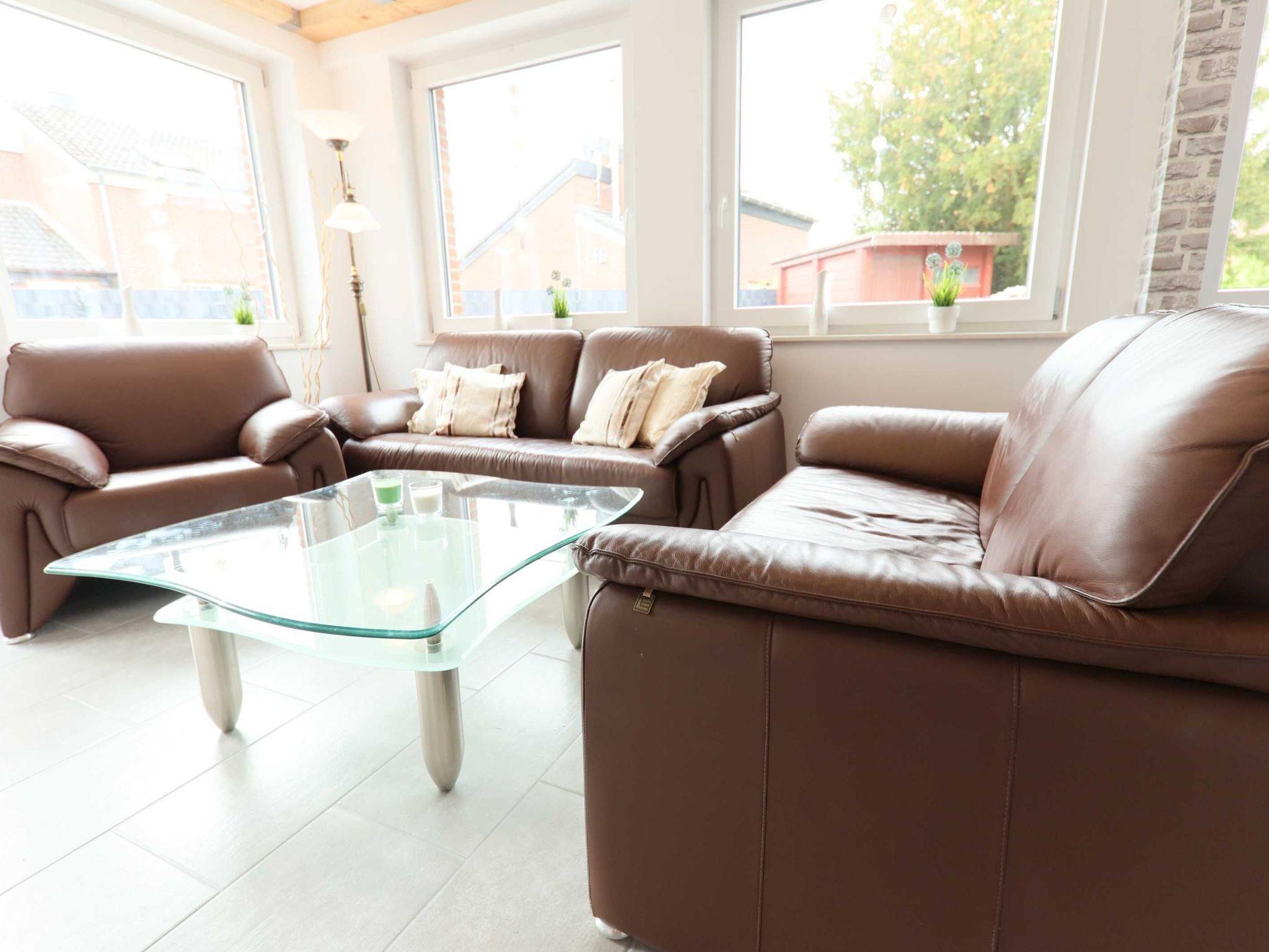 Im Erdgeschoss befindet sich die offene Küche mit voll ausgestatteter Küchenzeile mit Backofen und Cerankochfeld, Spülmaschine, Kaffeemaschine, Wasserkocher und Toaster. Vom Wohnbereich, mit gemütlicher Sofalandschaft und Sat- TV, gelangen Sie auf die Terrasse und den Garten. Für die Terrasse stehen Ihnen Gartenmöbel sowie ein Strandkorb zur Verfügung. Ein Schuppen bietet Platz für Ihre Fahrräder.