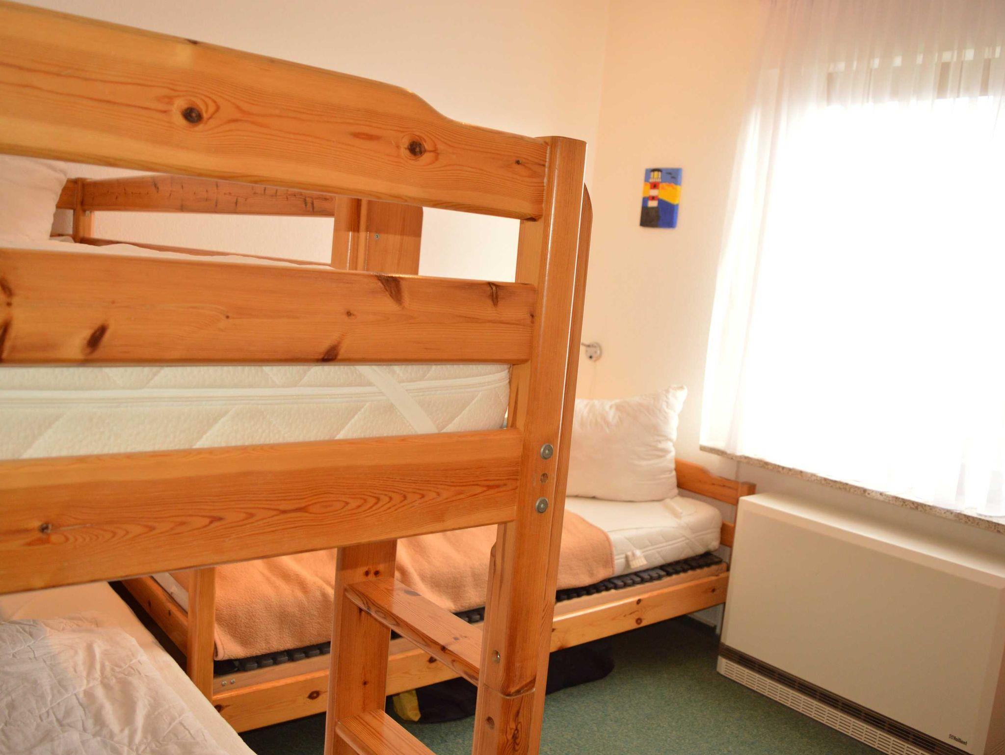 Das ebenerdige Ferienhaus Köhne verfügt über zwei Schlafzimmer, davon ein Schlafzimmer mit Doppelbett und ein Schlafzimmer mit einem Etagenbett sowie einem Einzelbett. Das Wohnzimmer mit offener vollausgestatteter Küche verfügt über einen direkten Zugang auf die Terrasse und den anschließenden Garten. Das Badezimmer verfügt über eine Dusche und ein WC. Zum Haus gehört eine Garage.