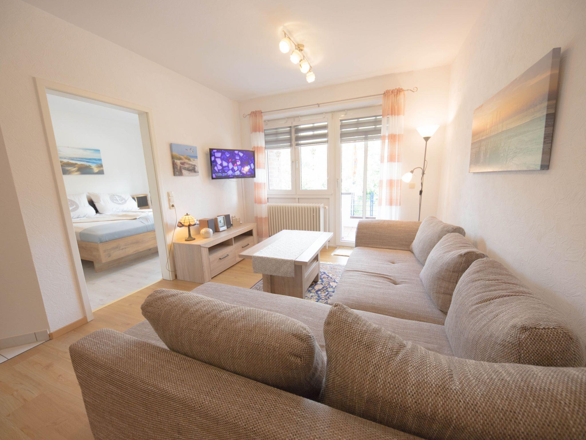 Gemütliche Ferienwohnung Boje 9 in Schillig mit Balkon, Strandkorb und WLAN, ideal für erholsame Tage an der Nordsee.