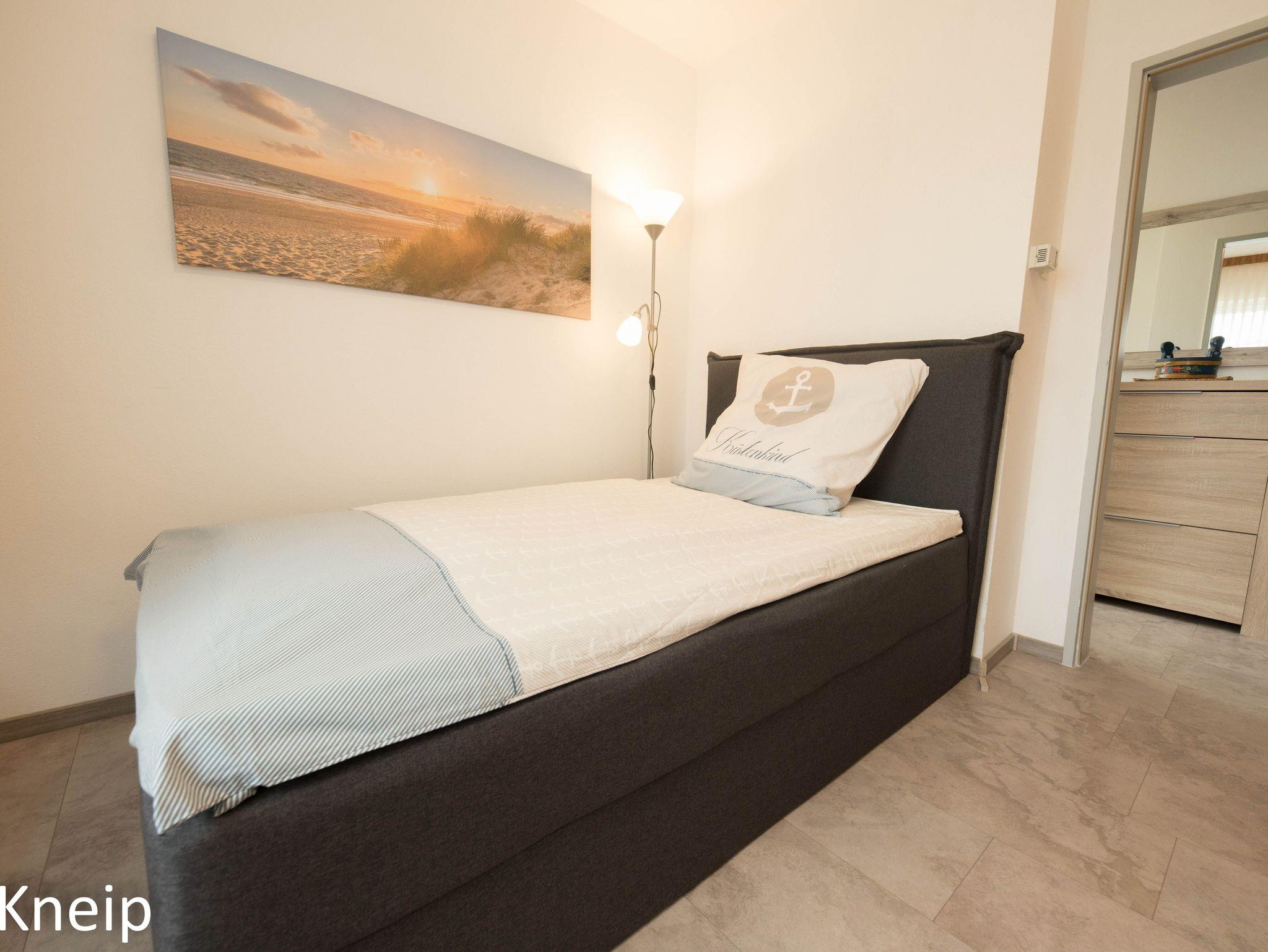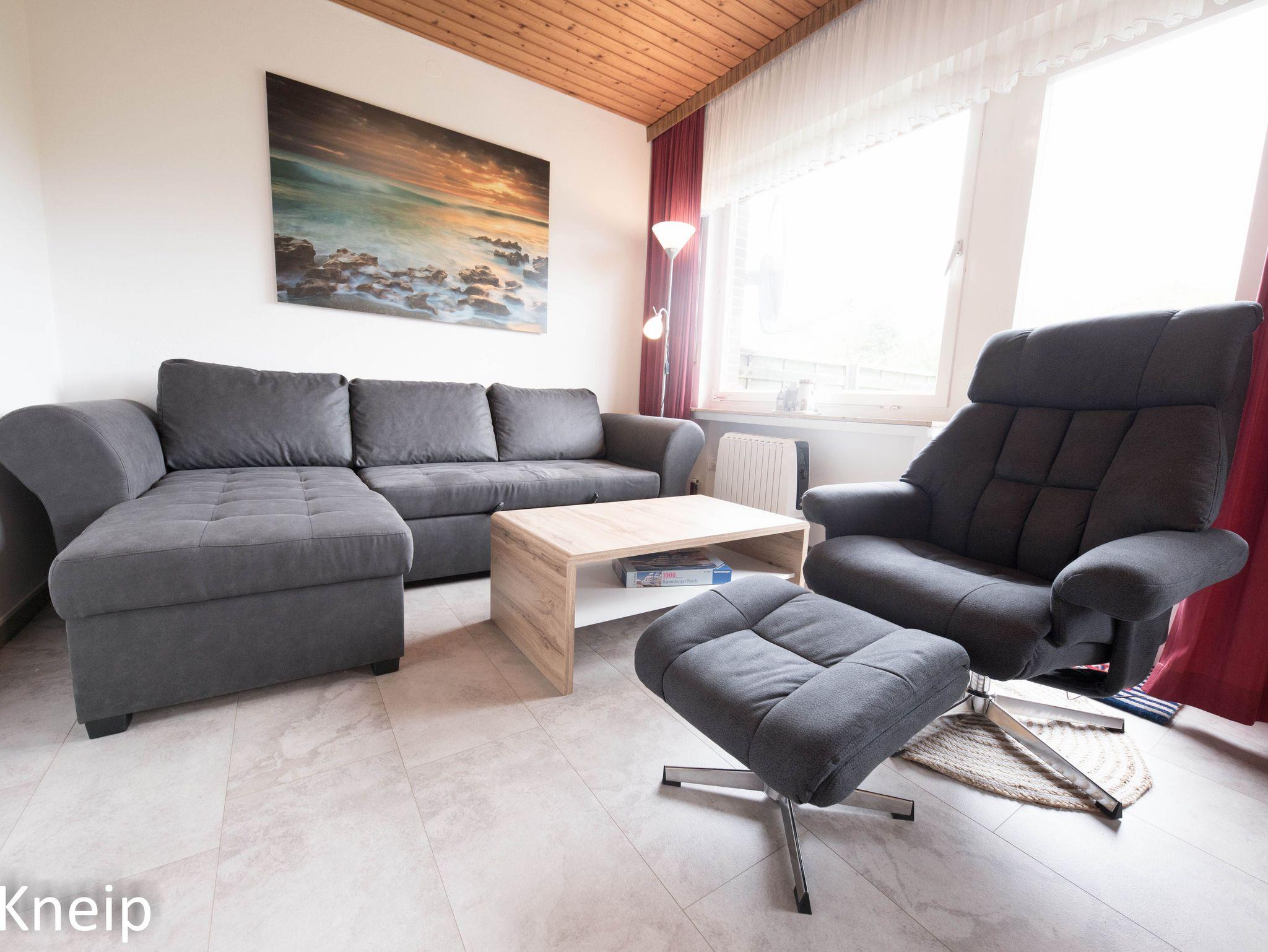 Das Ferienhaus Schillig Reede bietet nur 5 Gehminuten vom Strand entfernt modernen Komfort und eine einladende Terrasse mit Garten.