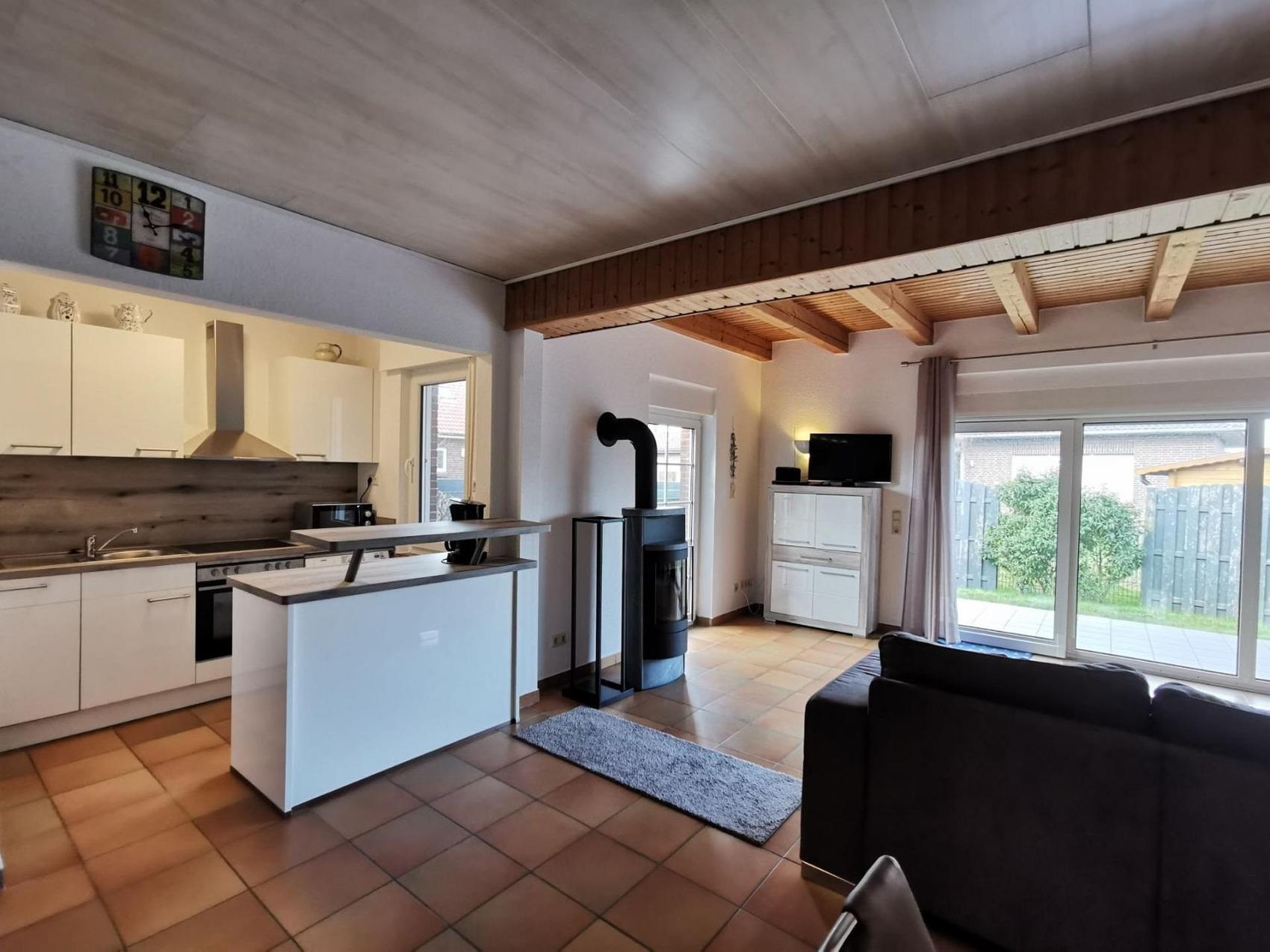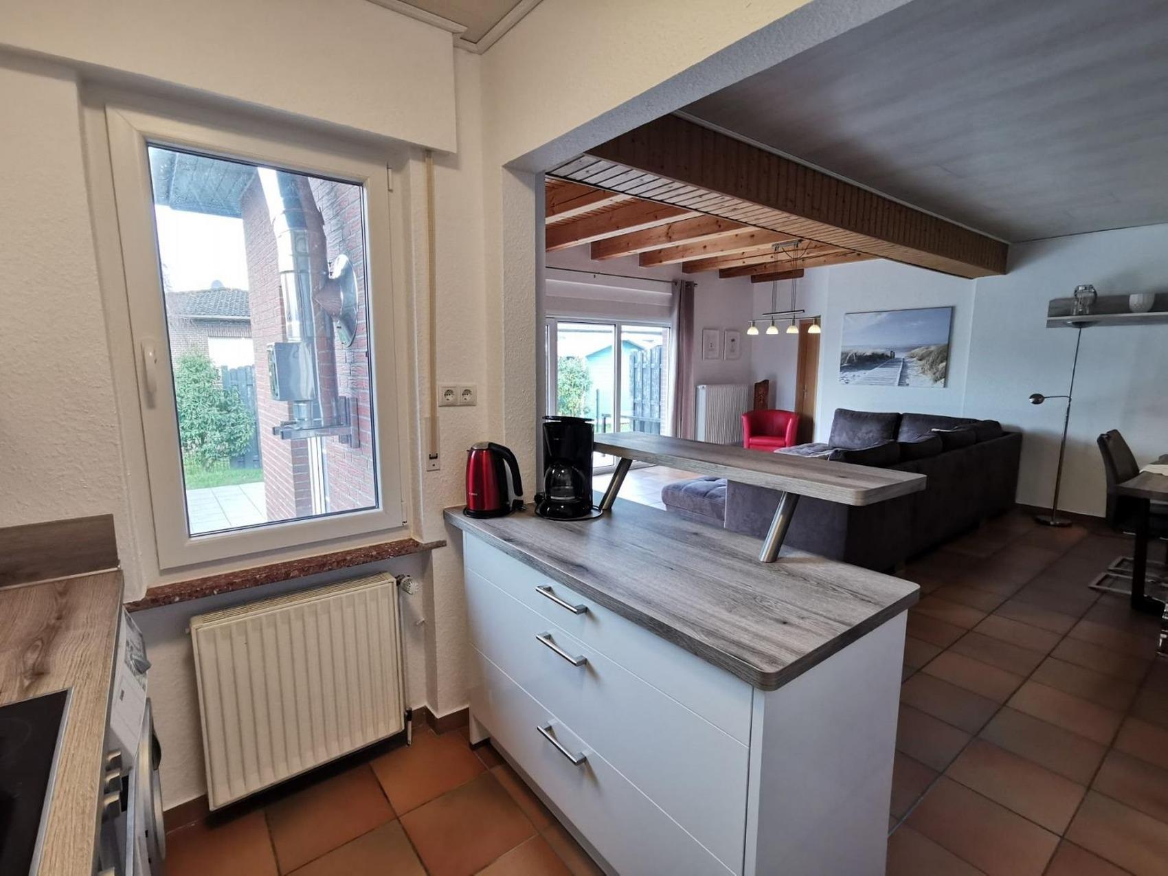 Unser Ferienhaus liegt in Schillig im schönen Inselviertel im Langeoogweg. Bis zum Deich sind es ca. 200m. Es bietet den Komfort eines freistehenden Hauses mit umliegenden Garten.Durch die lichtdurchfluteten Fenster bietet das Haus mit dem großen sehr gemütlichen Wohnbereich einen tollen Ausblick auf die möblierte Außenterrasse.Das Haus ist gemütlich eingerichtet, damit sie sich im Urlaub so wohl wie zu Hause fühlen können.Das Wohnzimmer ist mit TV und DVD-Player ausgestattet und bietet ausreichend Platz zum gemütlichen Beisammensein auf der Couch oder zum kommunikativen Essen an dem Esstisch. Die Küche ist ausgestattet mit Backofen / Herd, Mikrowelle, Spülmaschine. Zusätzlich befindet sich in der Küche die Waschmaschine. Ein großer Kühl- Gefrierschrank lässt alle Einkäufe für den Urlaub problemlos verstauen. Wir haben zwei Schlafzimmer, eins mit Doppelbett und ein Zimmer verfügt über zwei Einzelbetten.