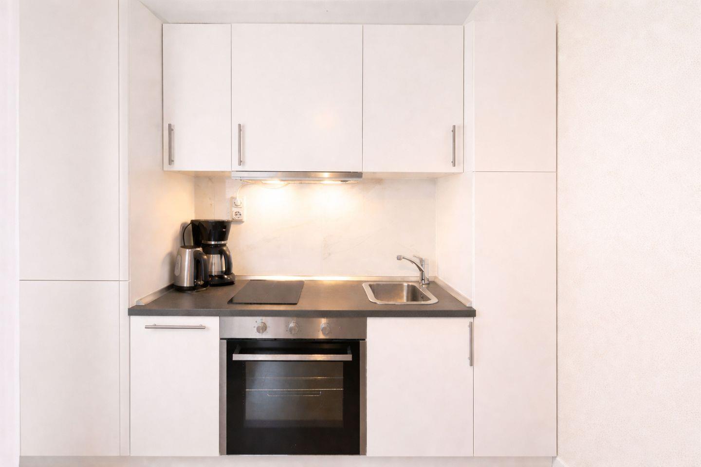 Das helle Schlafzimmer ist mit einem komfortablen Doppelbett ausgestattet und sorgt für erholsame Nächte nach einem Tag an der frischen Nordseeluft. Der offen gestaltete Wohn- und Küchenbereich lädt mit seiner behaglichen Atmosphäre zum Verweilen ein und bietet mit einem ausziehbaren Schlafsofa eine zusätzliche Schlafmöglichkeit für eine weitere Person. Die funktionale Küchenzeile ist zweckmäßig ausgestattet und verfügt über alles, was Sie für die Selbstversorgung im Urlaub benötigen, darunter Backofen, Ceranfeld mit zwei Kochfeldern, Kühlschrank, Kaffeemaschine, Wasserkocher, Toaster sowie eine Mikrowelle.
