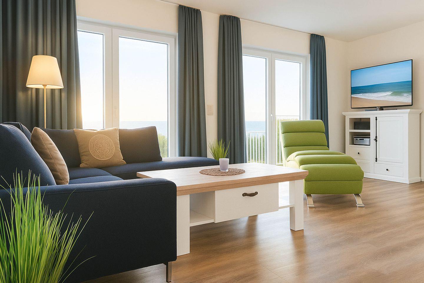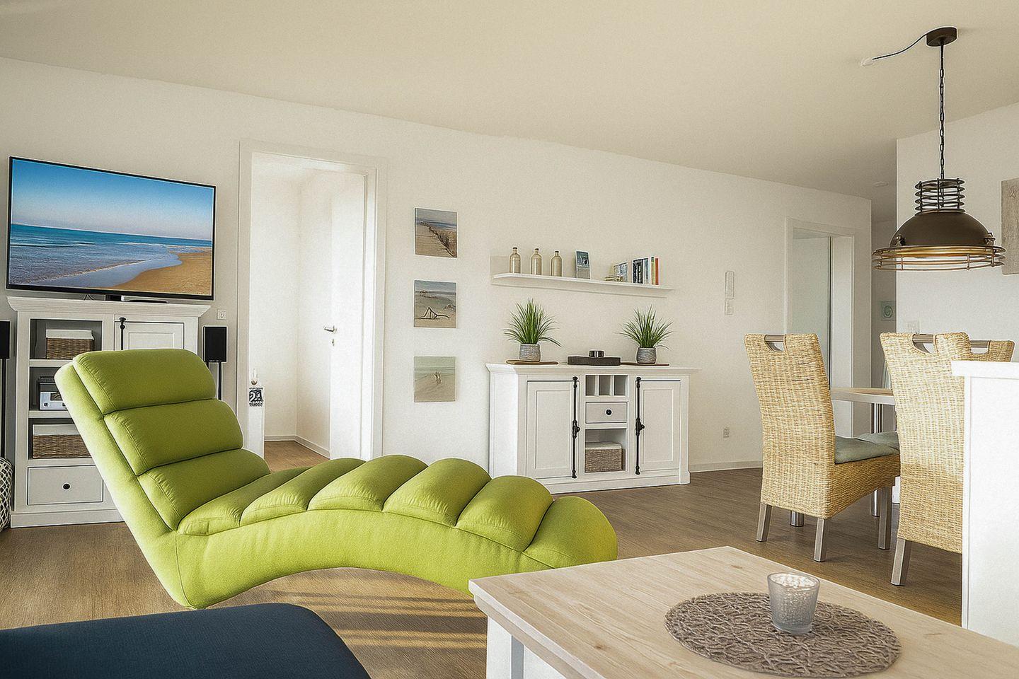 Moderne Ferienwohnung Weitblick in Schillig mit Sauna, Balkon und Strandnähe für erholsamen Urlaub.