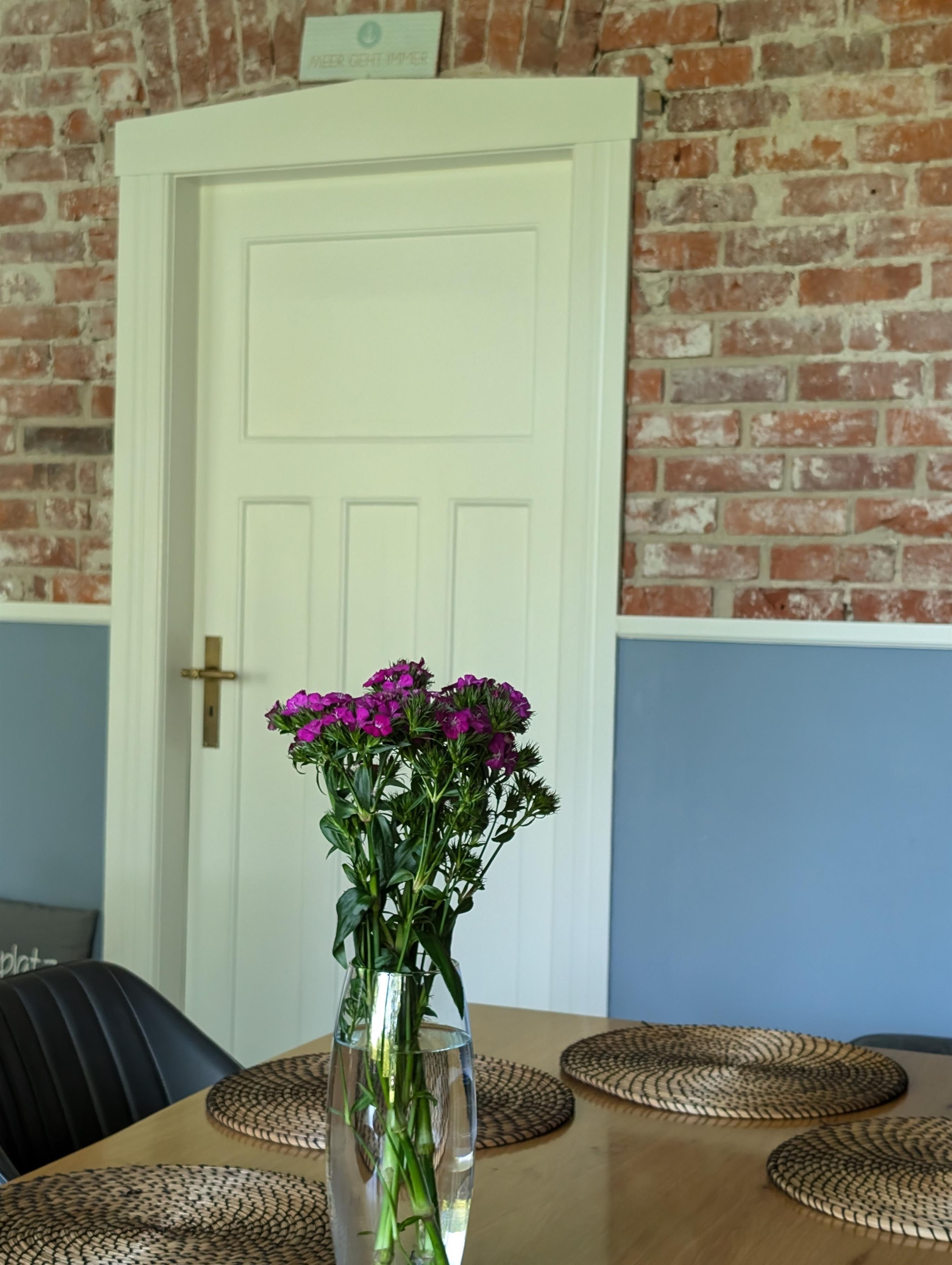 Wiesengrün ist eine von drei modern ausgestatteten Ferienwohnungen des Hofes "Traumkrone Ferienwohnungen" mit drei Schlafzimmern, einem kombinierten Wohn-Essbereich samt Küche sowie zwei Bädern.