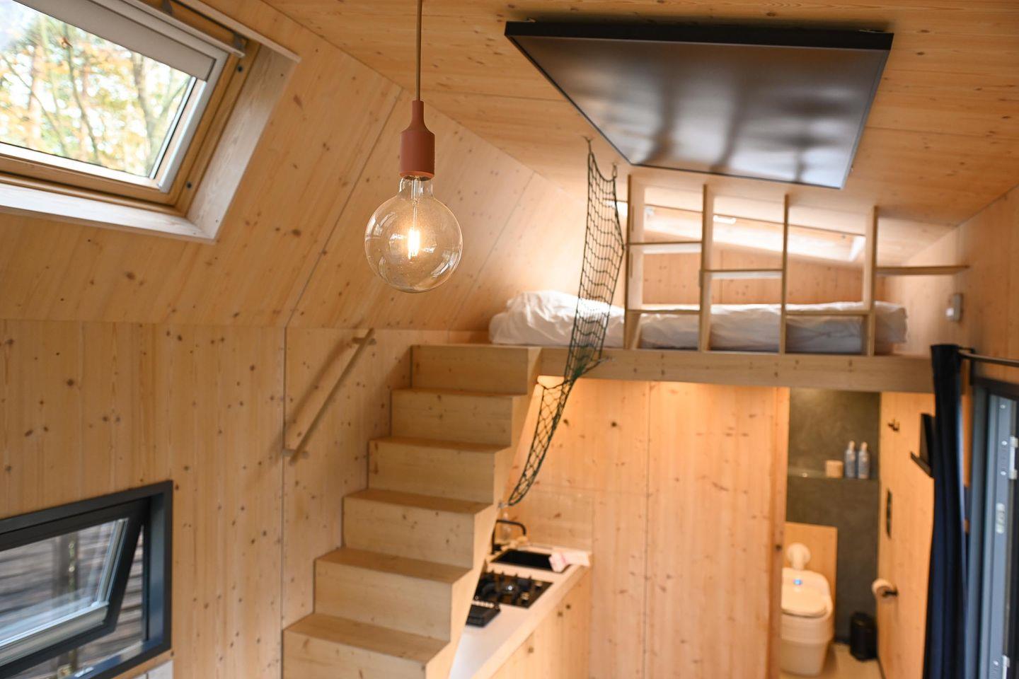 Übernachte in unserem Flagship-Modell für Designliebhaber - dem Green Tiny House Pioneer. Erlebe Nachhaltigkeit von morgen und ein Naturerlebnis der besonderen Art. Unser Vorzeigemodell wird in liebevoller Manufakturarbeit in Schleswig-Holstein hergestellt und bietet auf 22 Quadratmetern Platz für bis zu drei Erwachsene oder zwei Erwachsene und zwei Kinder. Wie jedes unserer kleinen Häuschen ist es als nachhaltige Ferienimmobilie zertifiziert und besteht komplett aus wohngesunden Materialien. Zu den Ausstattungshighlights gehören ein übergroßes Panoramafenster, ein skandinavischer Kaminofen und eine ressourcensparende Astronautendusche. Zusätzlich kompensieren wir alle anfallenden CO2-Emissionen und ermöglichen dir so eine klimaneutrale Übernachtung.