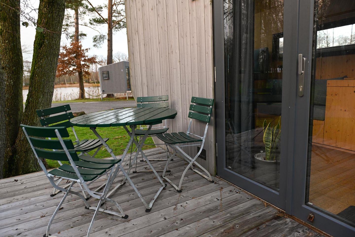 Erleben Sie nachhaltiges Wohnen im Green Tiny House Pioneer mit Seeblick am Naturbadesee in Friesland.