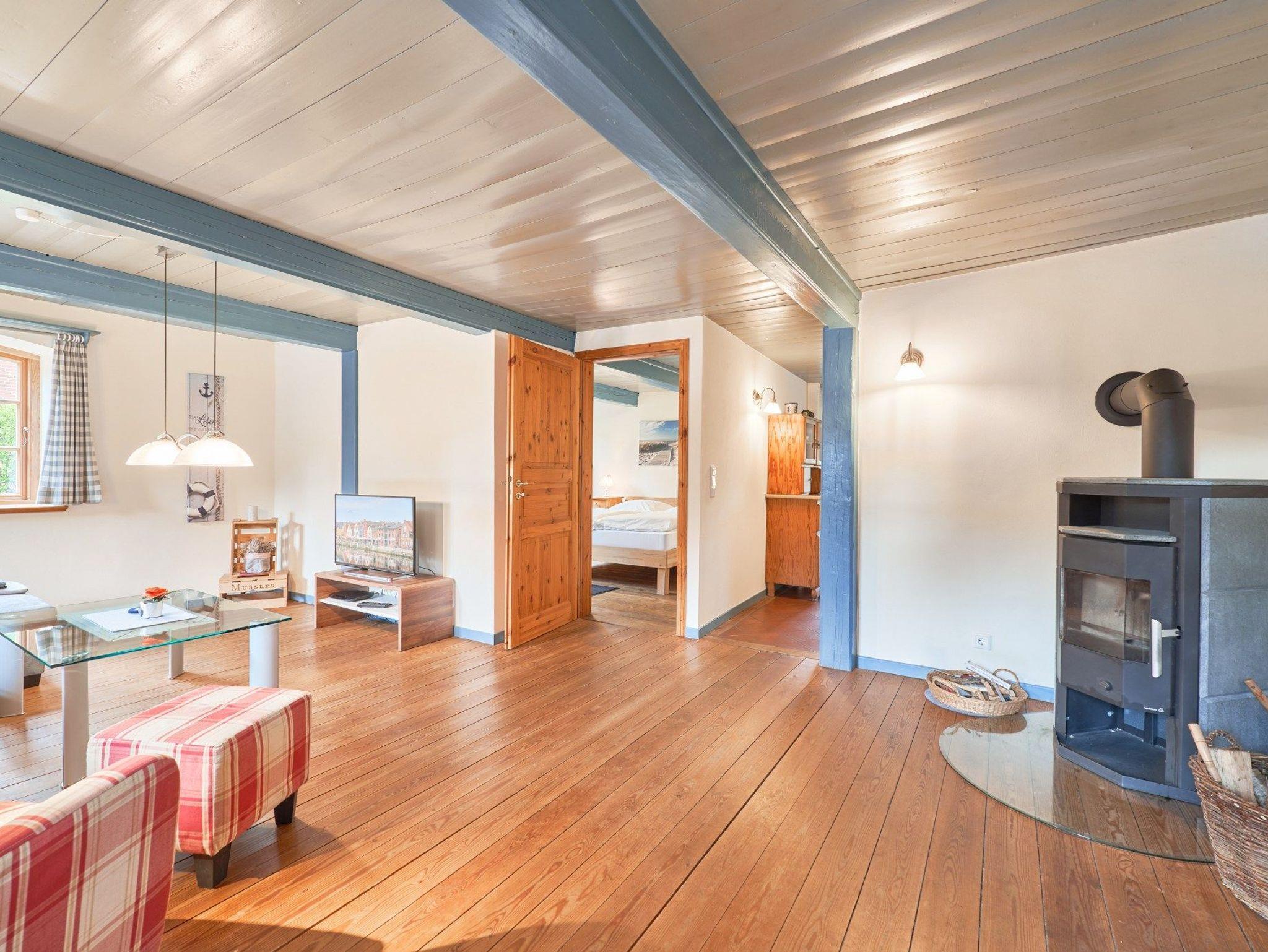 Wohnzimmer: Im gemütlichen Wohnzimmer können Sie nach einem erlebnisreichen Tag entspannen. Der Kaminofen sorgt für eine behagliche Atmosphäre an kühleren Abenden, während der SAT-TV und der Bluetooth-Lautsprecher für Unterhaltung sorgen.