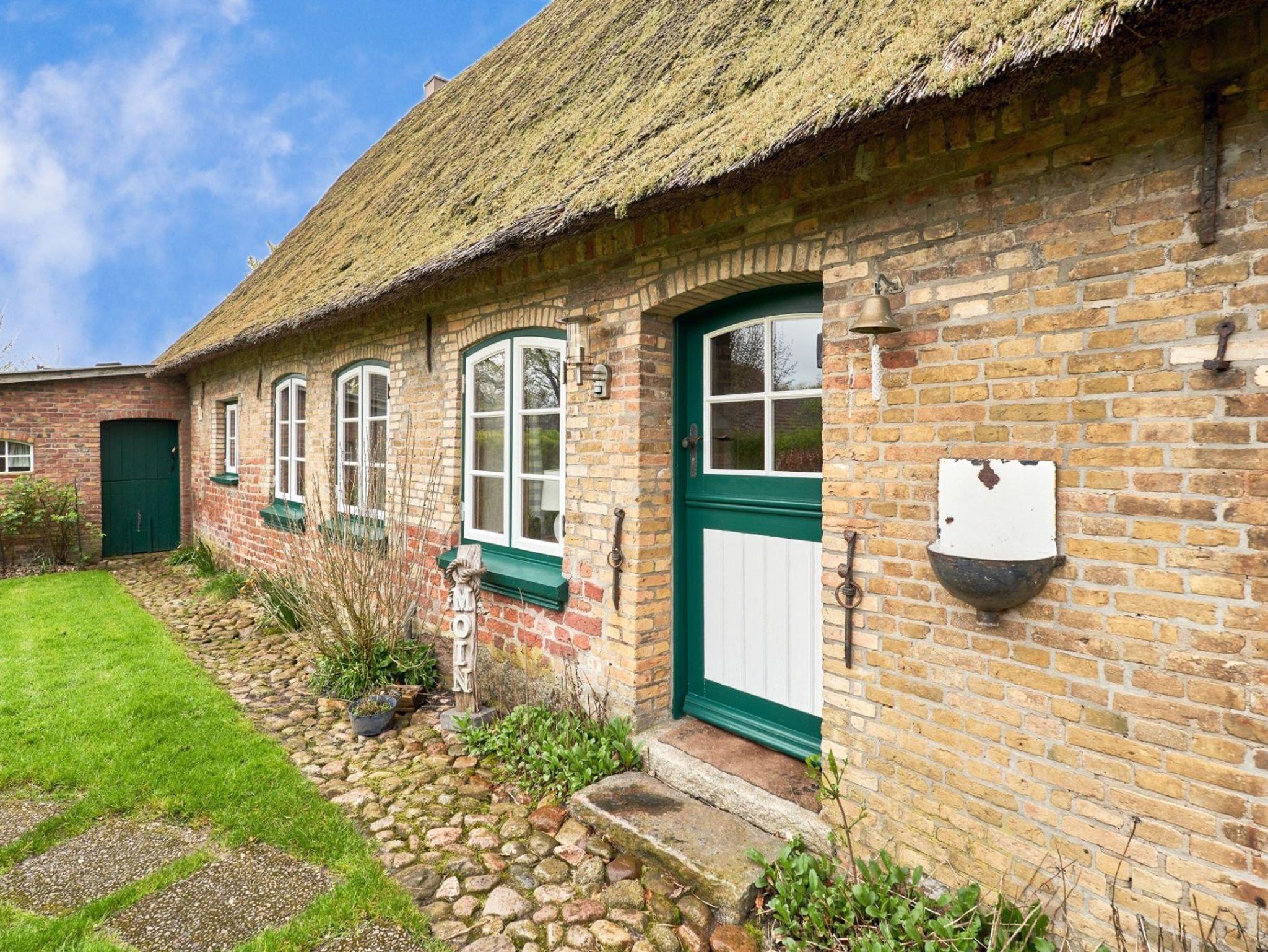 Charmantes Reetdachhaus Silvi im idyllischen Schwabstedt mit Garten, Kamin und moderner Ausstattung für erholsame Nordseeferien.