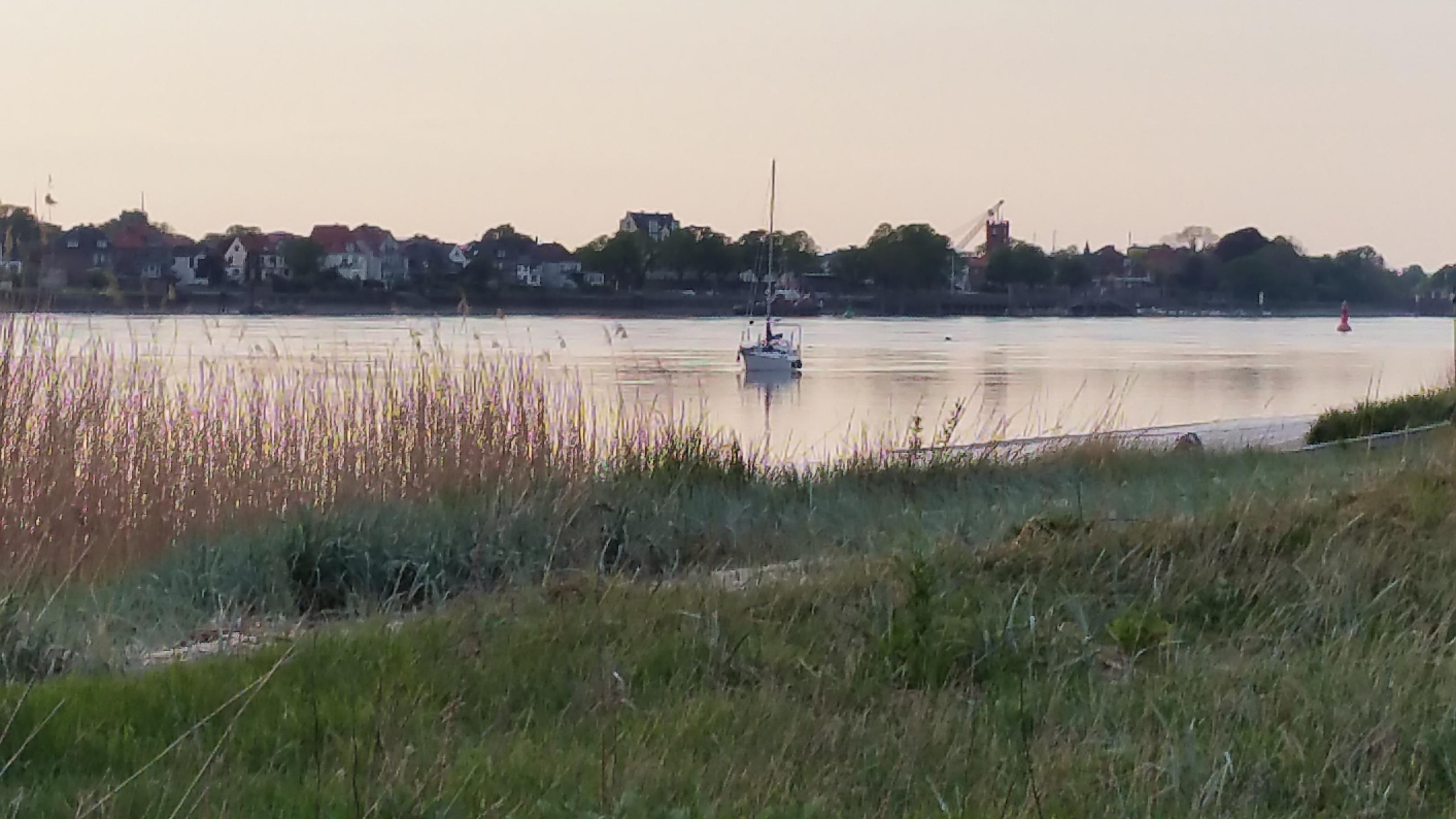 oder bei Hochwasser zum Schwimmen und Relaxen, Schiffe gucken