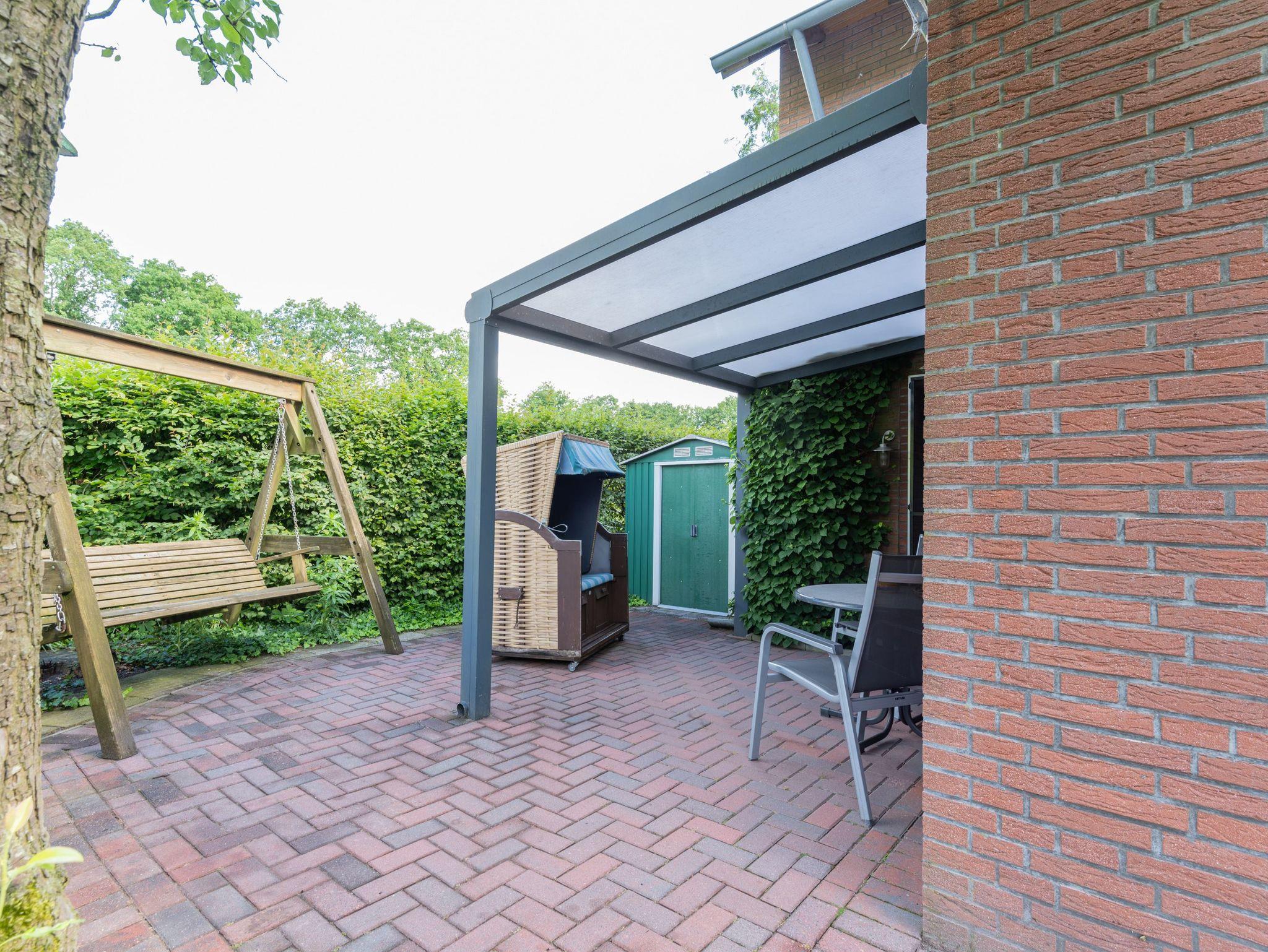 Eine überdachte Terrasse erreichen Sie bequem von der Küche oder vom Wohnzimmer aus. Eine Hollywoodschaukel auf der Terrasse lädt zum Verweilen ein, oder wenn Sie mögen, können sie den Grill benutzen und bei einem Gläschen Wein oder einer Flasche Bier den verdienten Urlaub genießen.
